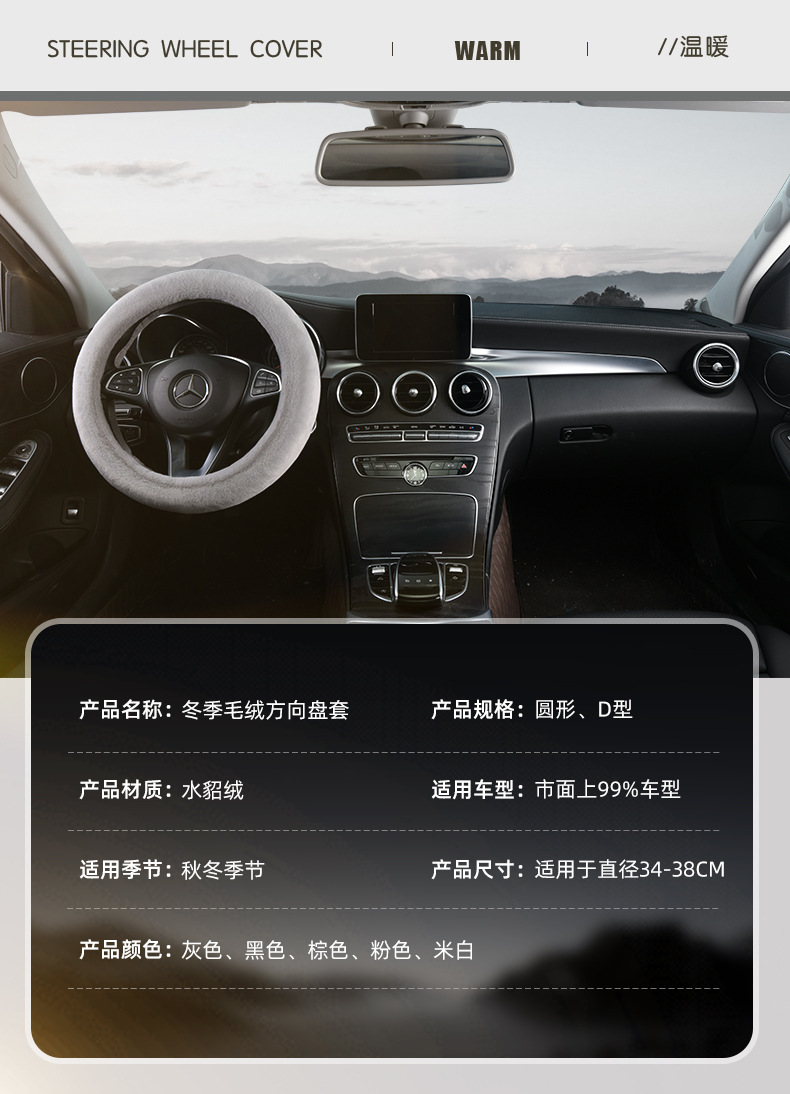 자동차 스티어링 휠 커버 겨울 플러시 밍크 벨벳 겨울 따뜻한 단색 핸들 짧은 보풀 크로스 국경 머리카락스토어 가기