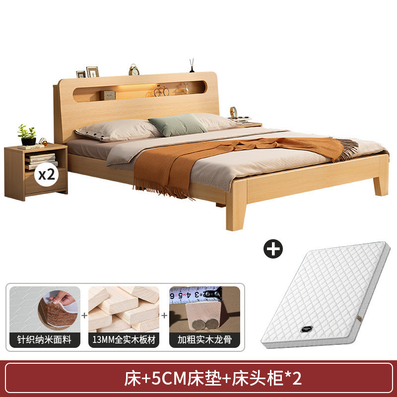 단단한 나무 침대 현대 간단한 1.5 m 마스터 침실 더블 침대 1.8 홈 북유럽 경제 임대 집 싱글 침대 프레임스토어 가기