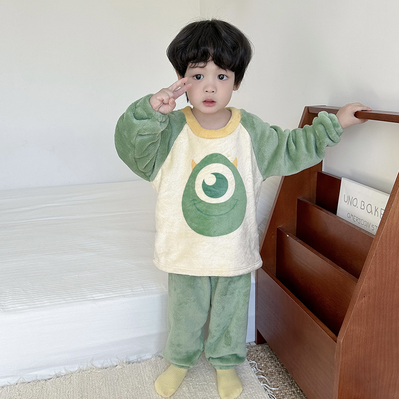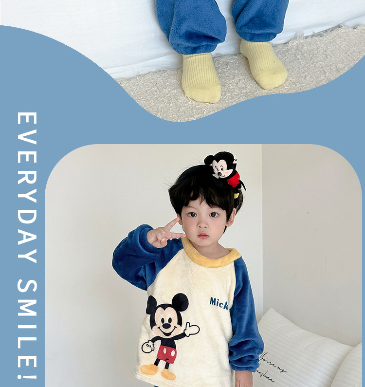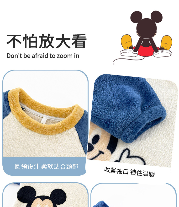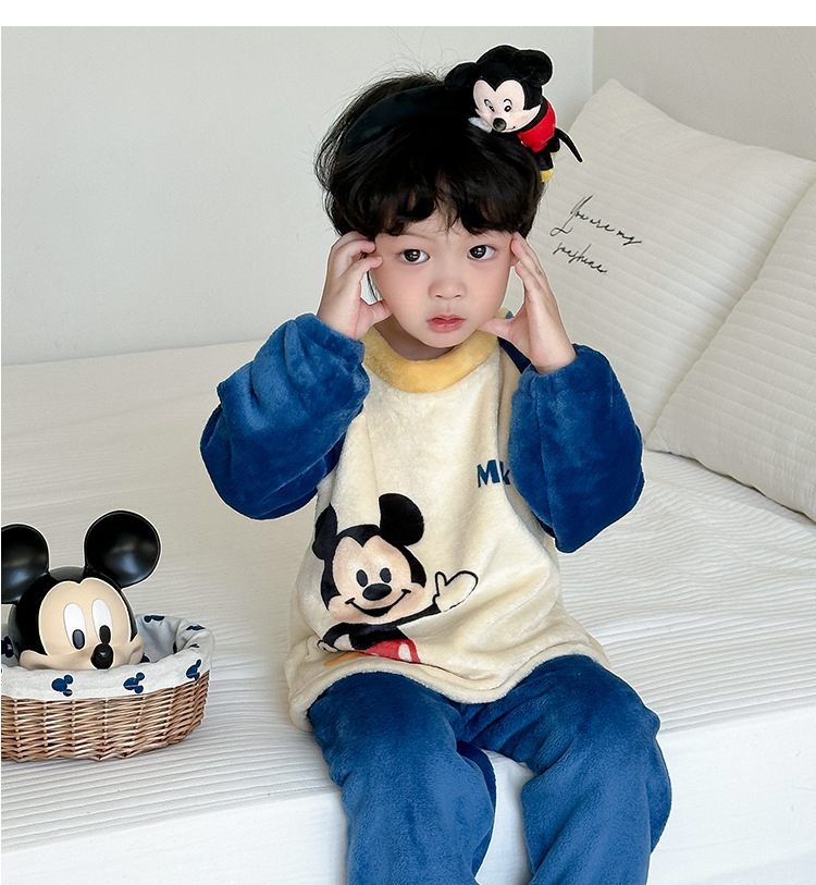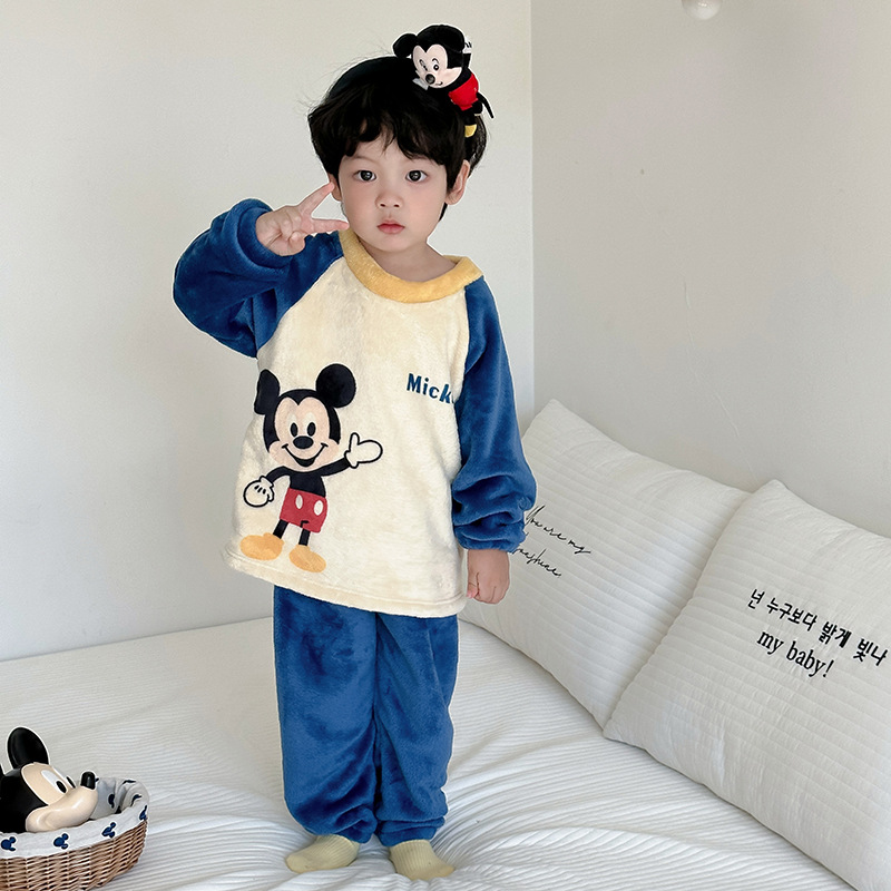 디즈니 어린이 잠옷 소년용 플란넬 가을 겨울 스타일 소년용 신상 겨울 두꺼운 벨벳 아기 홈웨어