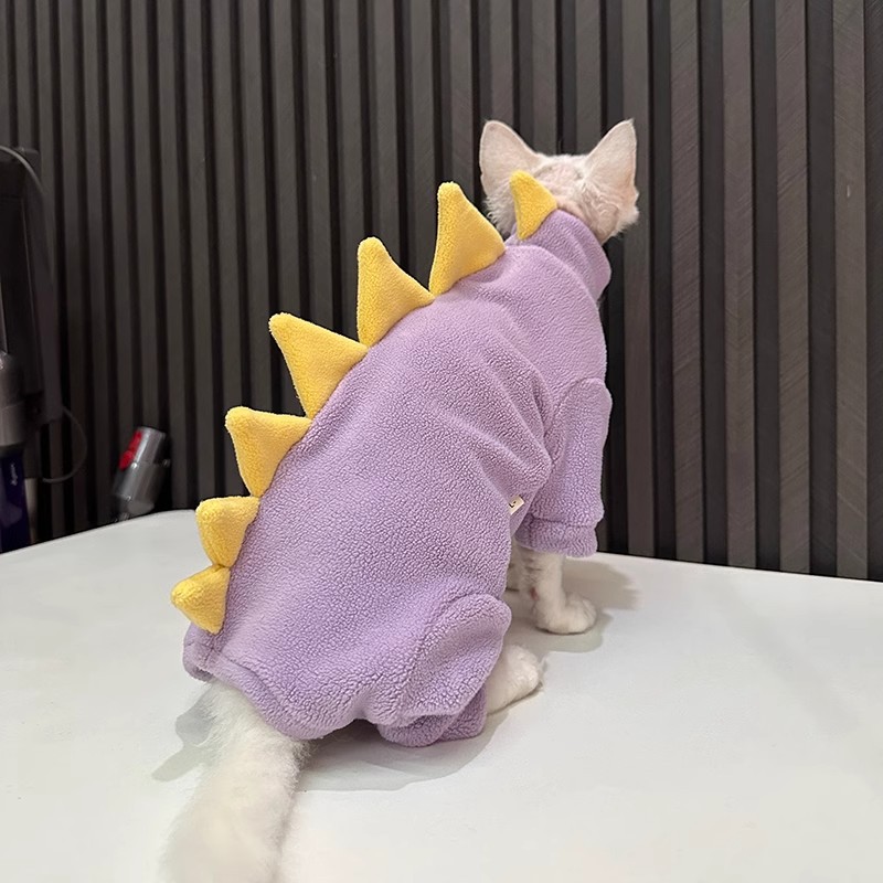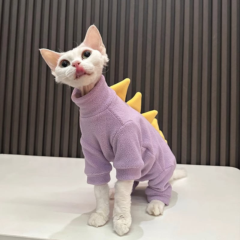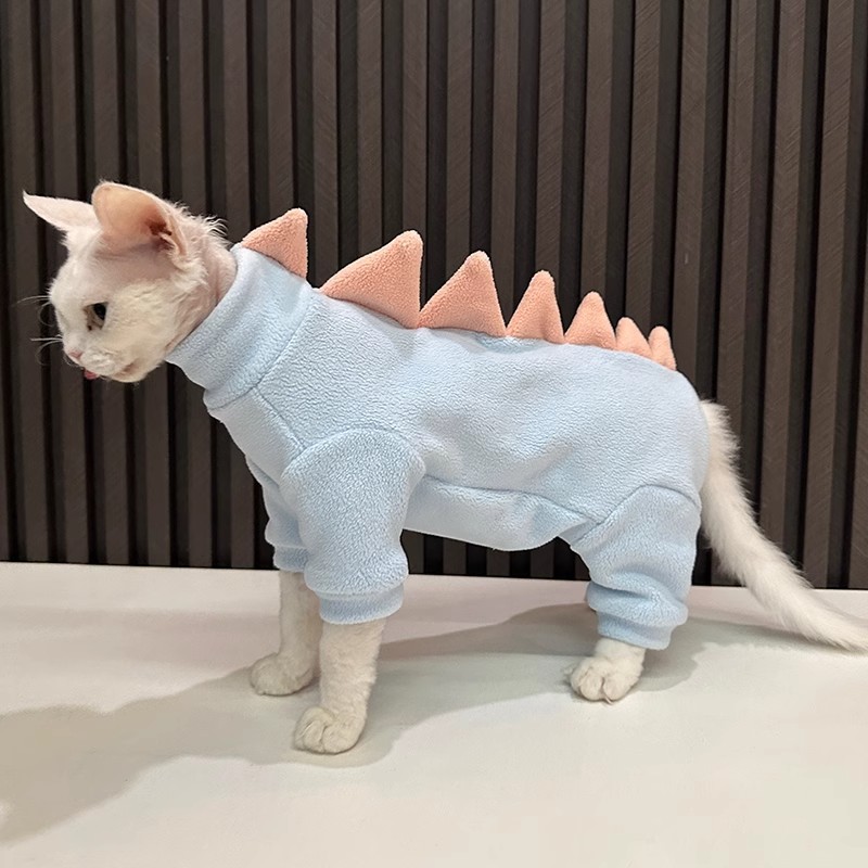 새로운 애완 동물 네 다리 옷 곡물 벨벳 배꼽 보호 작은 공룡 털이없는 고양이 옷 스핑크스 고양이 독일 옷스토어 가기