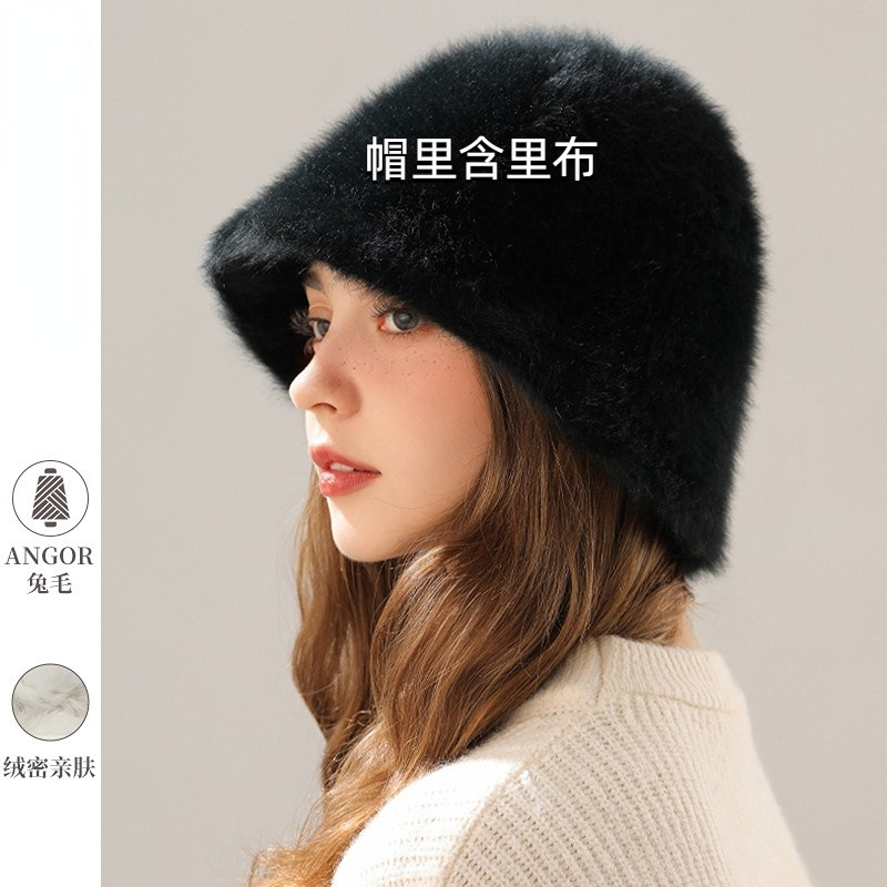 여자 겨울 큰 머리 진짜 토끼 모피 봉제 모자 가을과 겨울 분지 모자 얼굴 작은 양동이 어부 모자 모자스토어 가기
