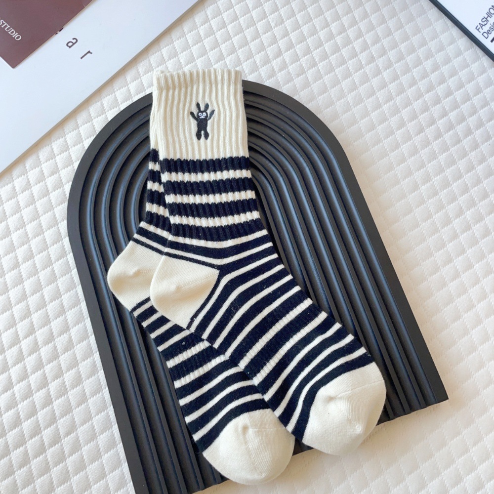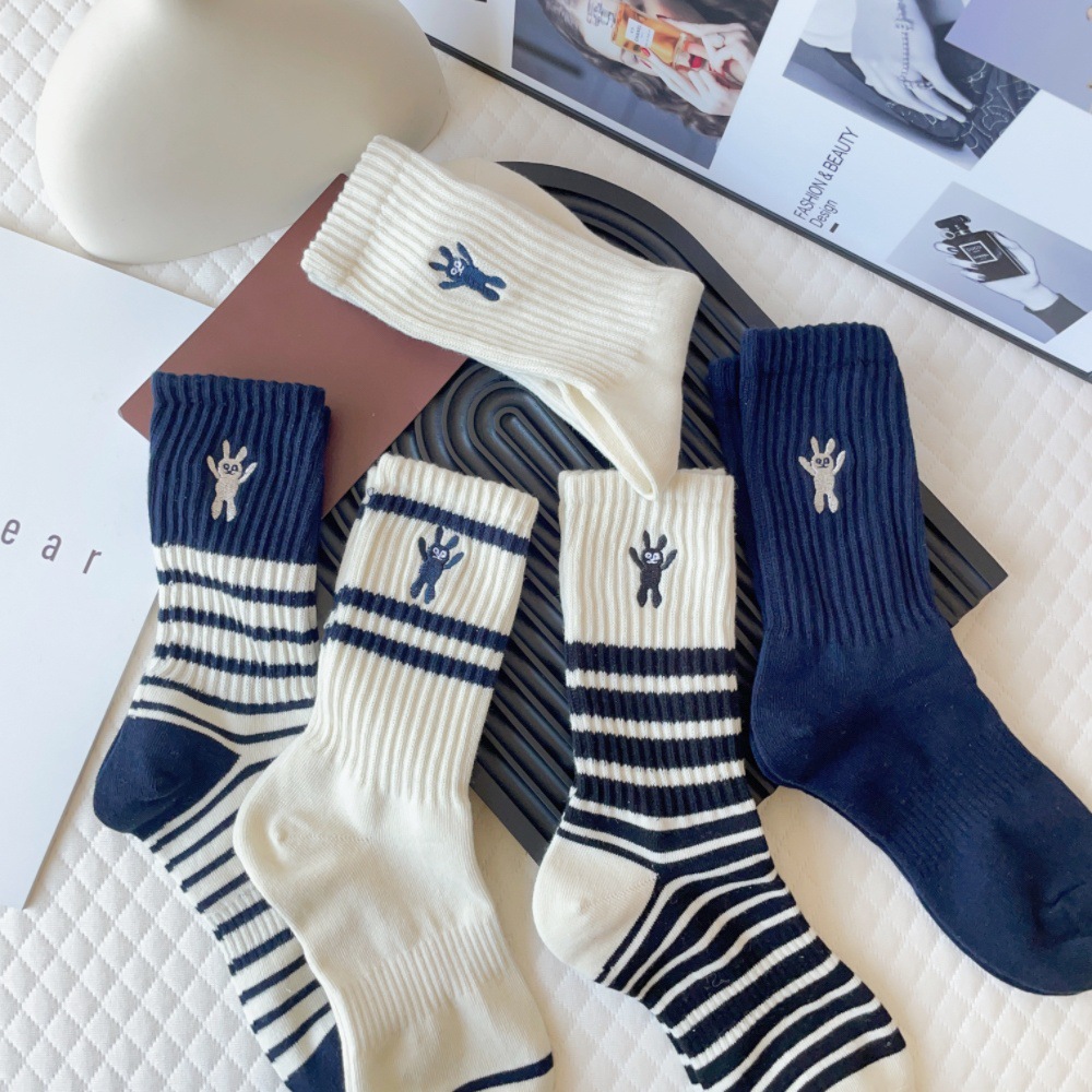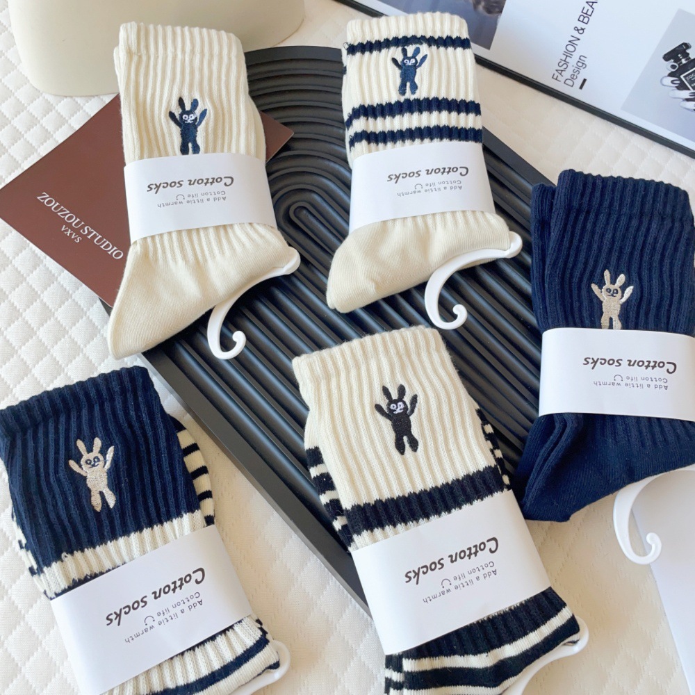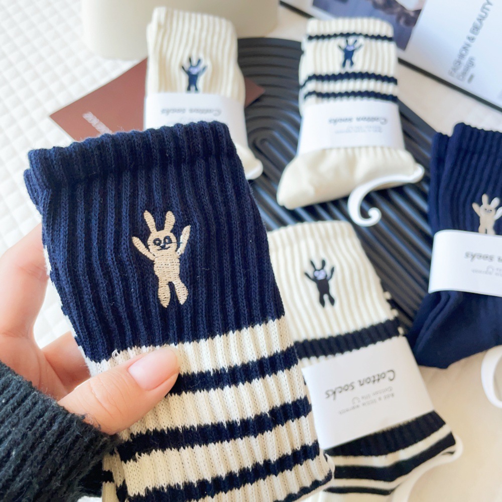 가을과 겨울 새 편지 양말 여성 스타킹 트렌디 올매치 자수 토끼 여성 양말 스트라이프 미드 튜브 양말스토어 가기