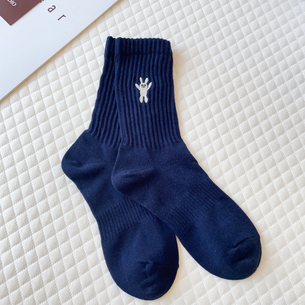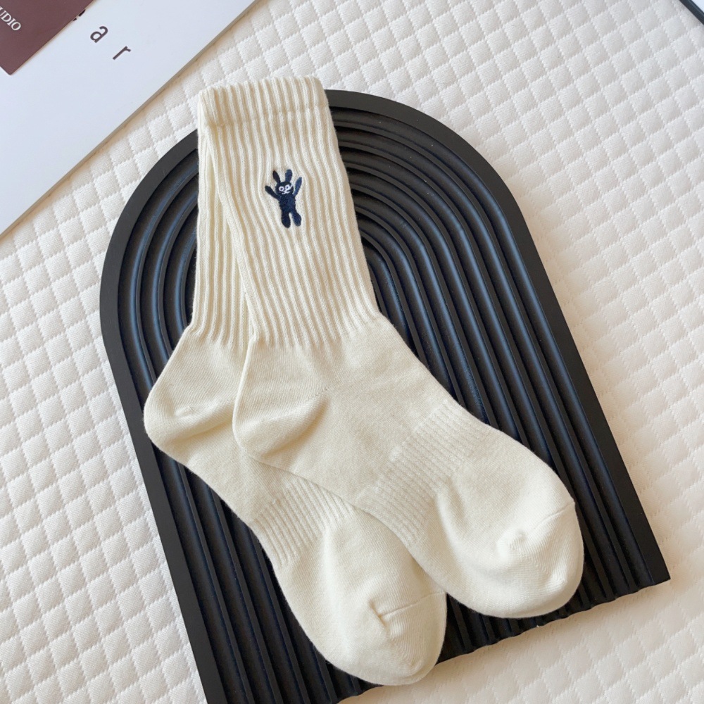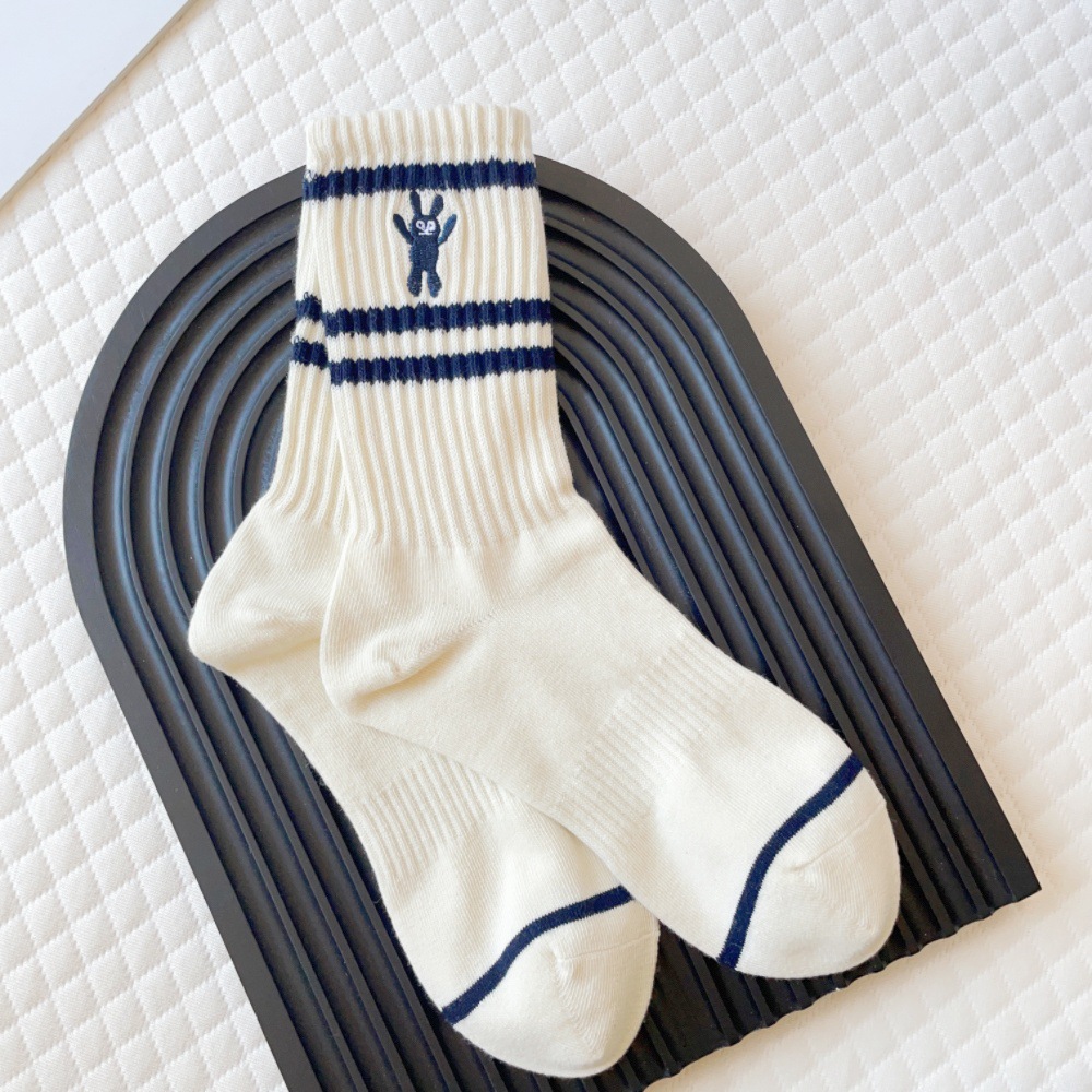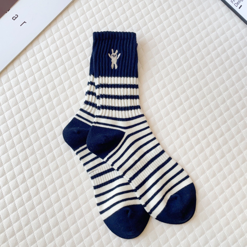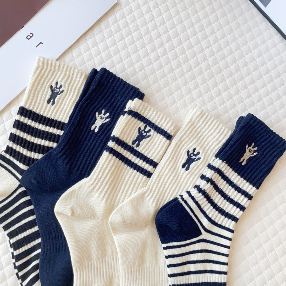 가을과 겨울 새 편지 양말 여성 스타킹 트렌디 올매치 자수 토끼 여성 양말 스트라이프 미드 튜브 양말스토어 가기