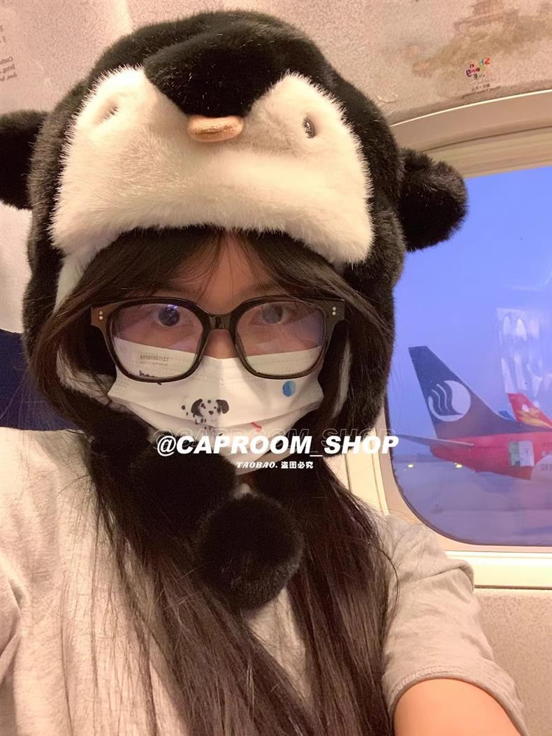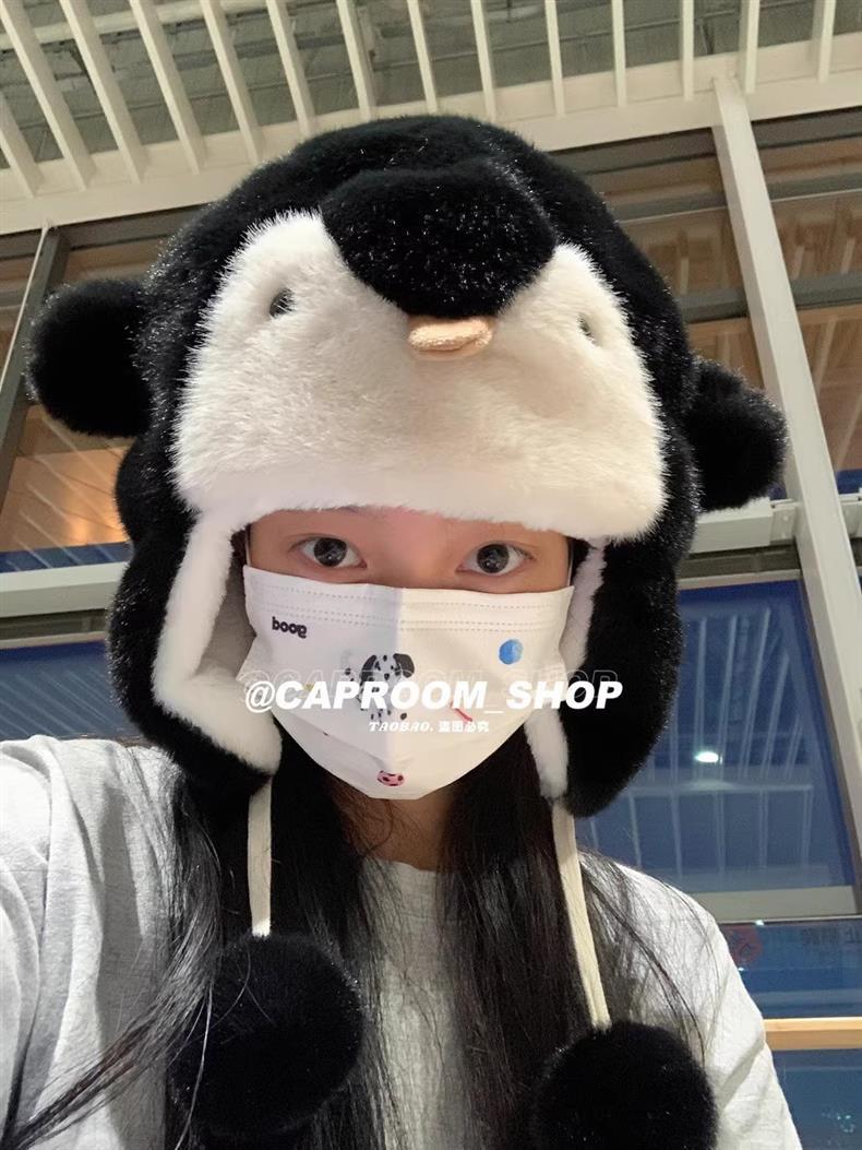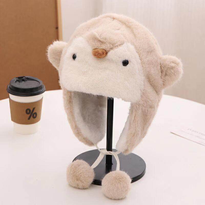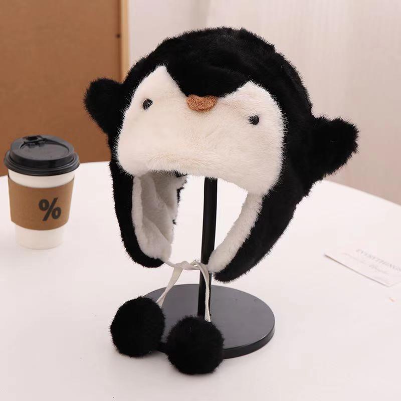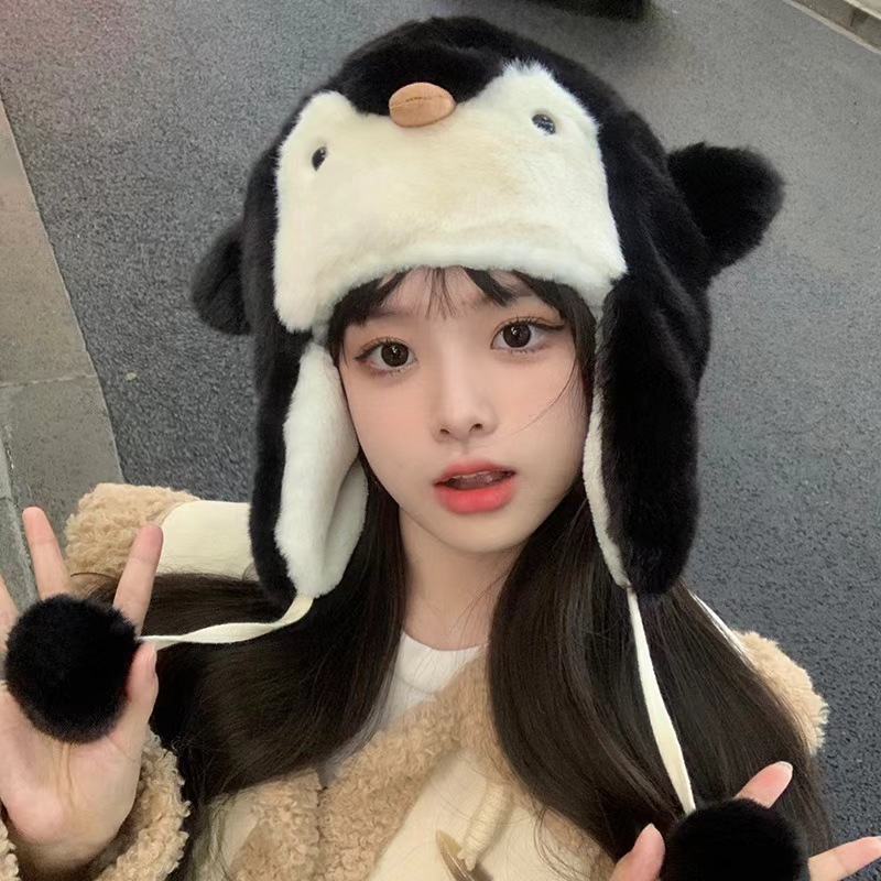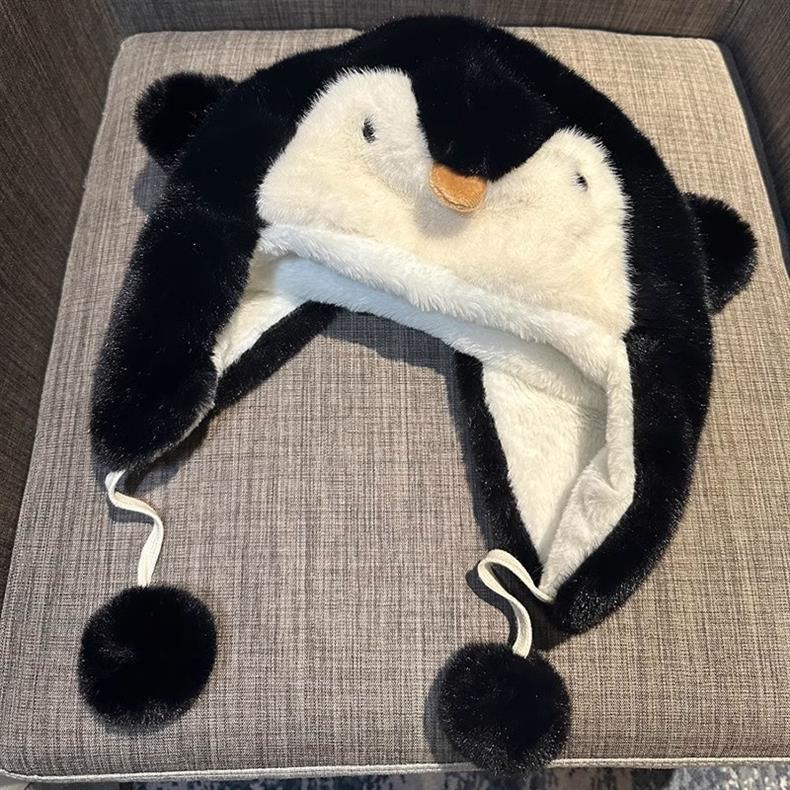 새로운 귀여운 펭귄 따뜻한 솜털 모자 여성의 겨울 두꺼운 방한 귀 보호자 Lei Feng Hat 사이클링 스키 모자
