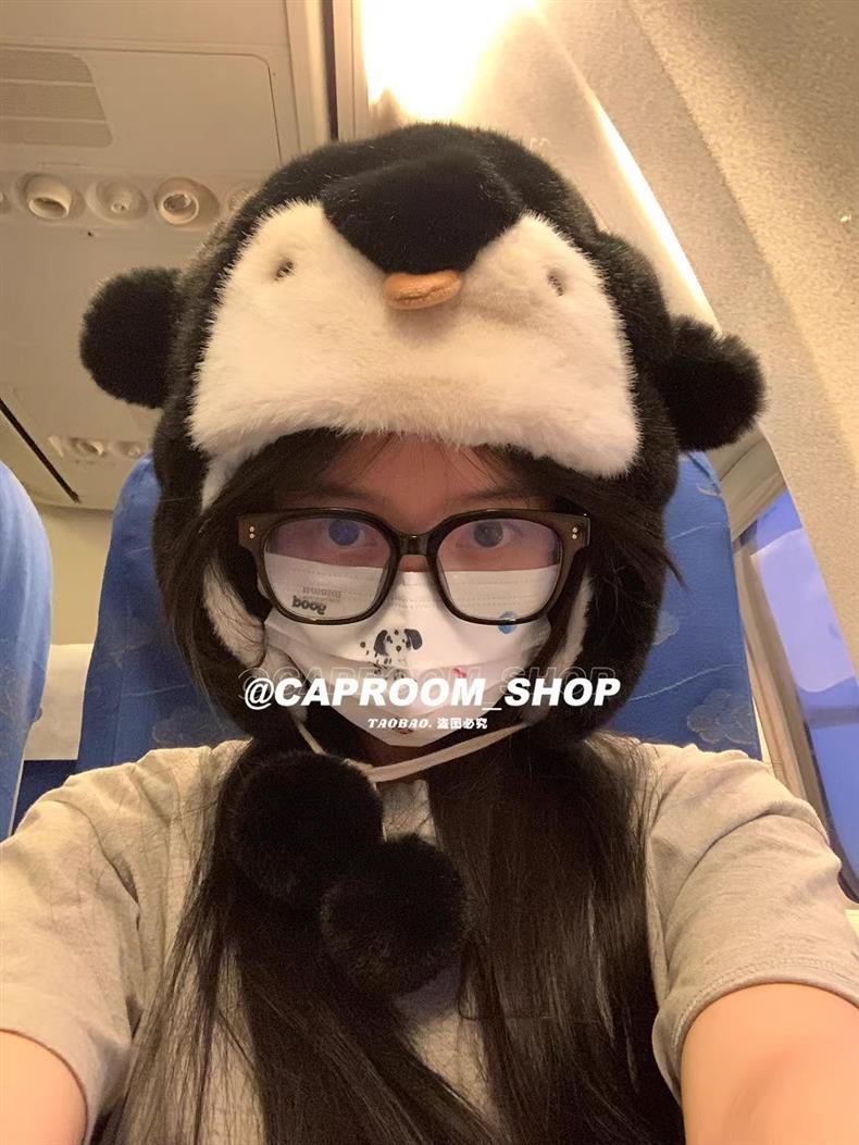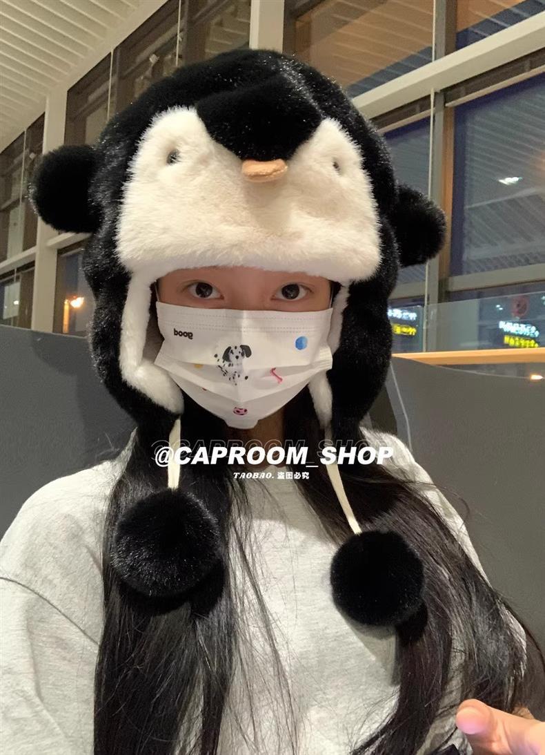 새로운 귀여운 펭귄 따뜻한 솜털 모자 여성의 겨울 두꺼운 방한 귀 보호자 Lei Feng Hat 사이클링 스키 모자스토어 가기