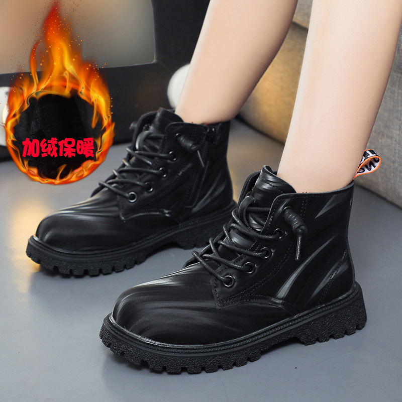 女童冬季新款马丁靴皮面防水冬天保暖大棉中大童软底舒适女孩皮靴