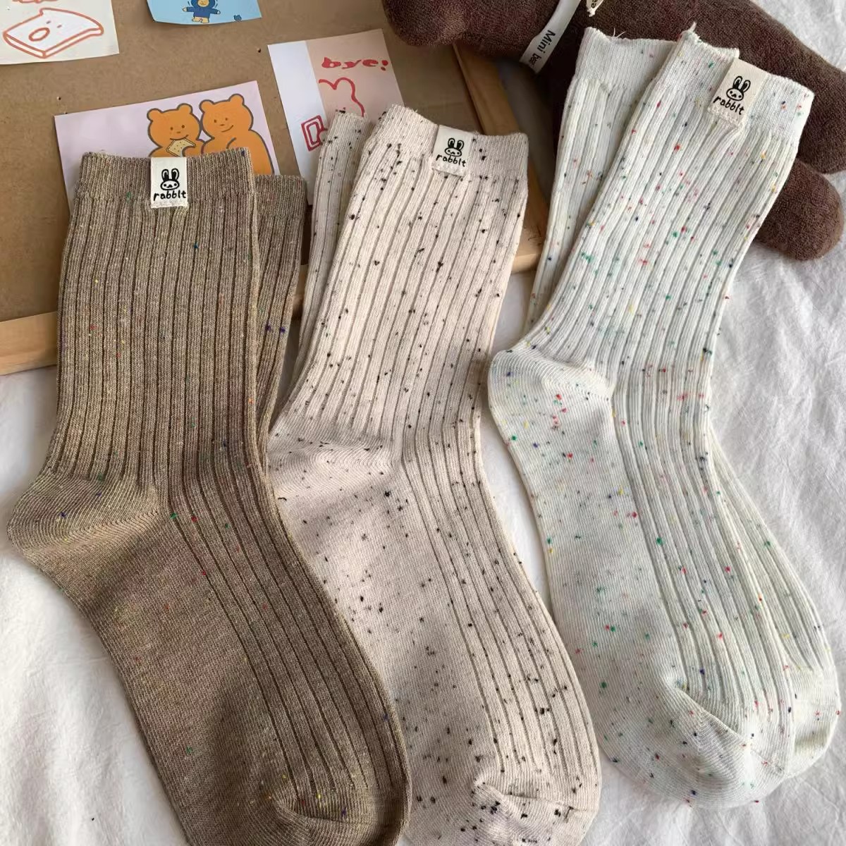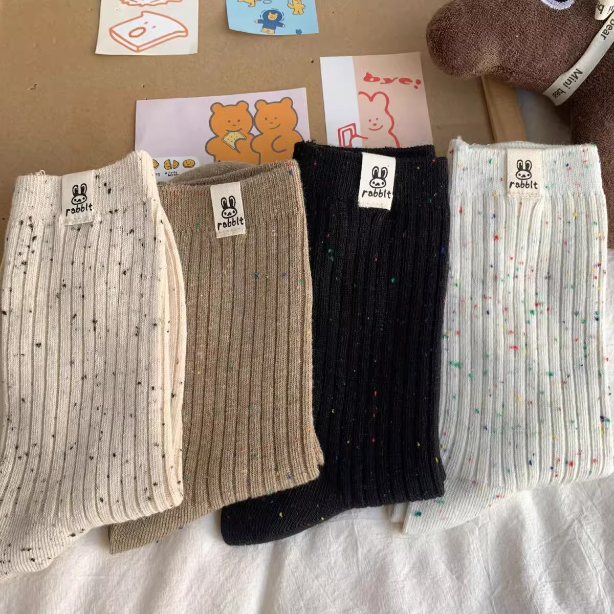가을 겨울 여성용 양말 메일라드 종아리 양말 복고풍 한국식 천 라벨 스타킹 단색 아이디어 원사 푹신한 면 양말스토어 가기