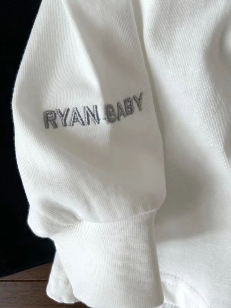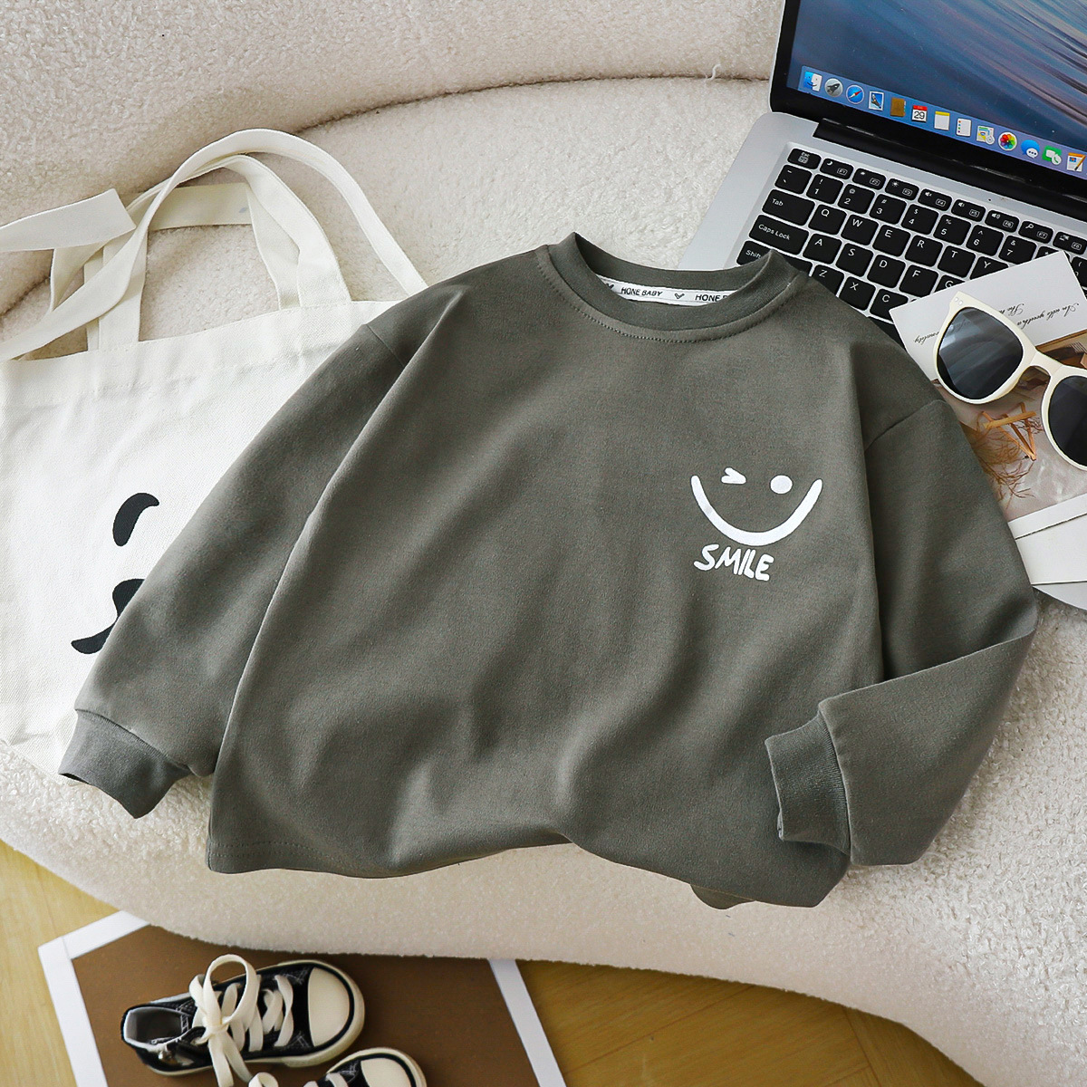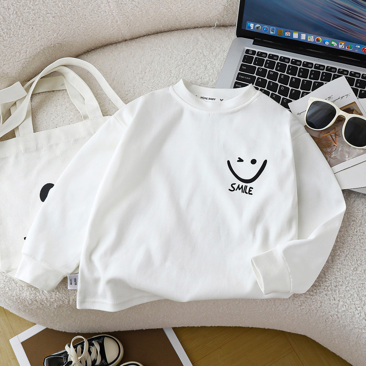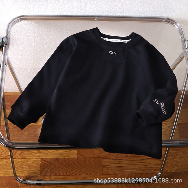 봄과 가을 유행 면 긴 소매 편지베이스 셔츠 소년과 소녀 하이 퀄리티 탑 패딩 천 자수 솔리드 컬러베이스 셔츠