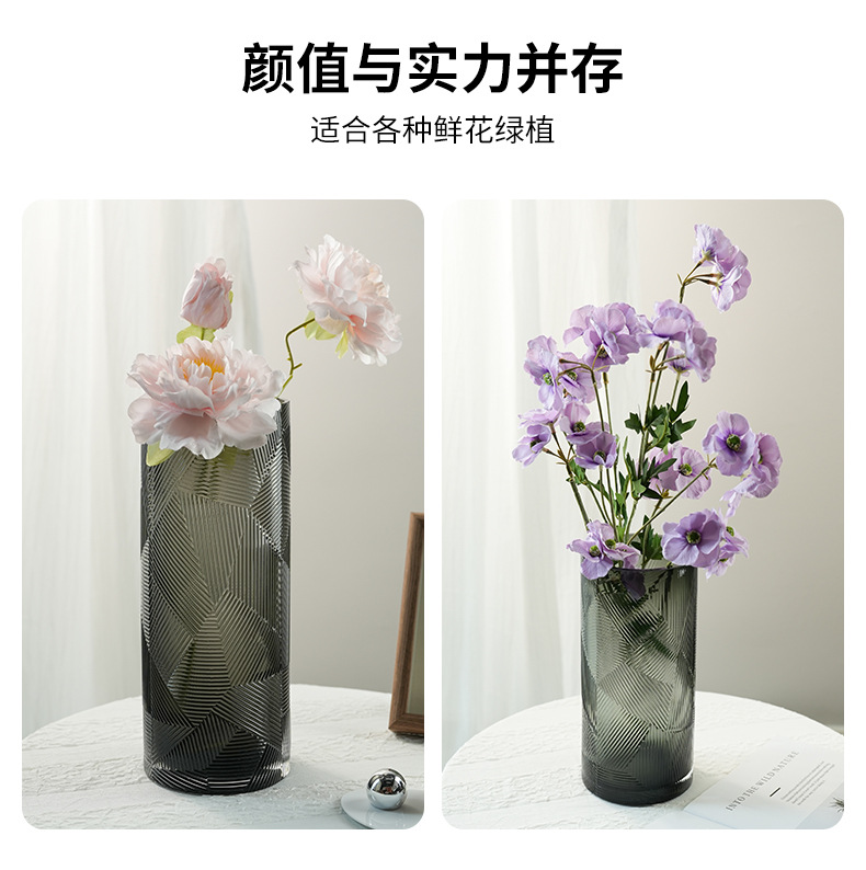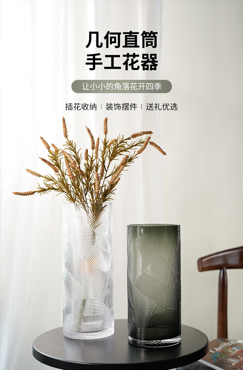 현대 기하학 직선 유리 꽃병 높은 색상 가치 장식장 스타일 거실 꽃병 꽃 배열 고급 장식스토어 가기