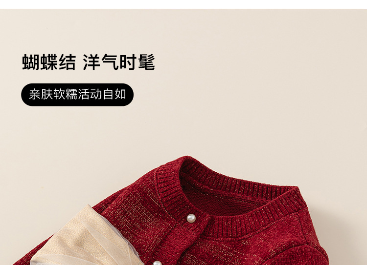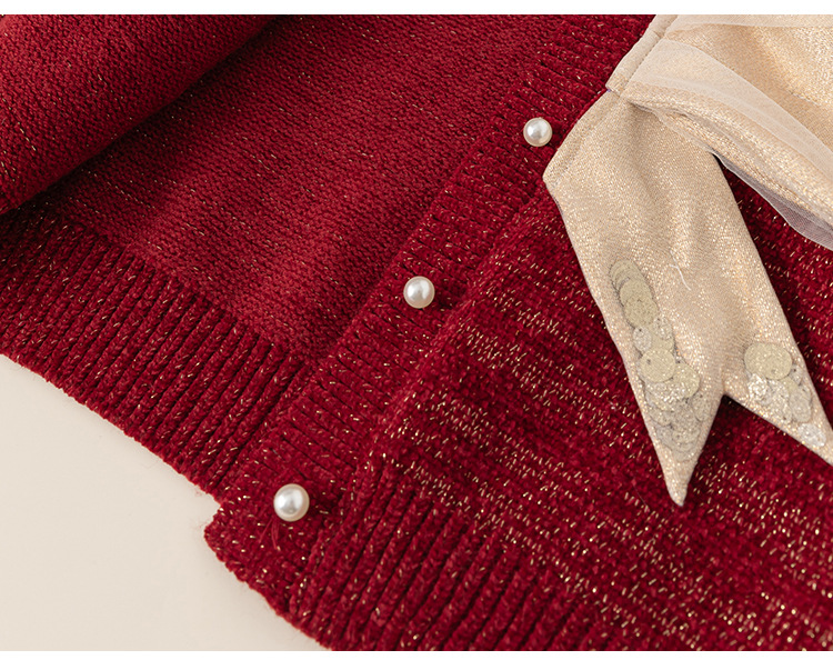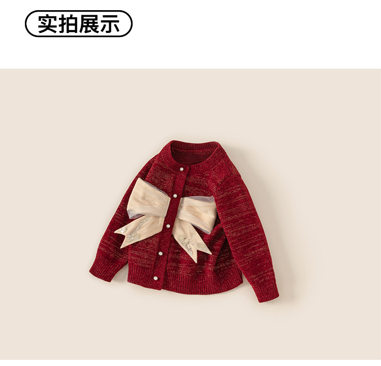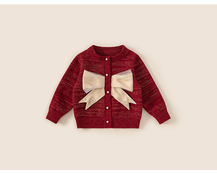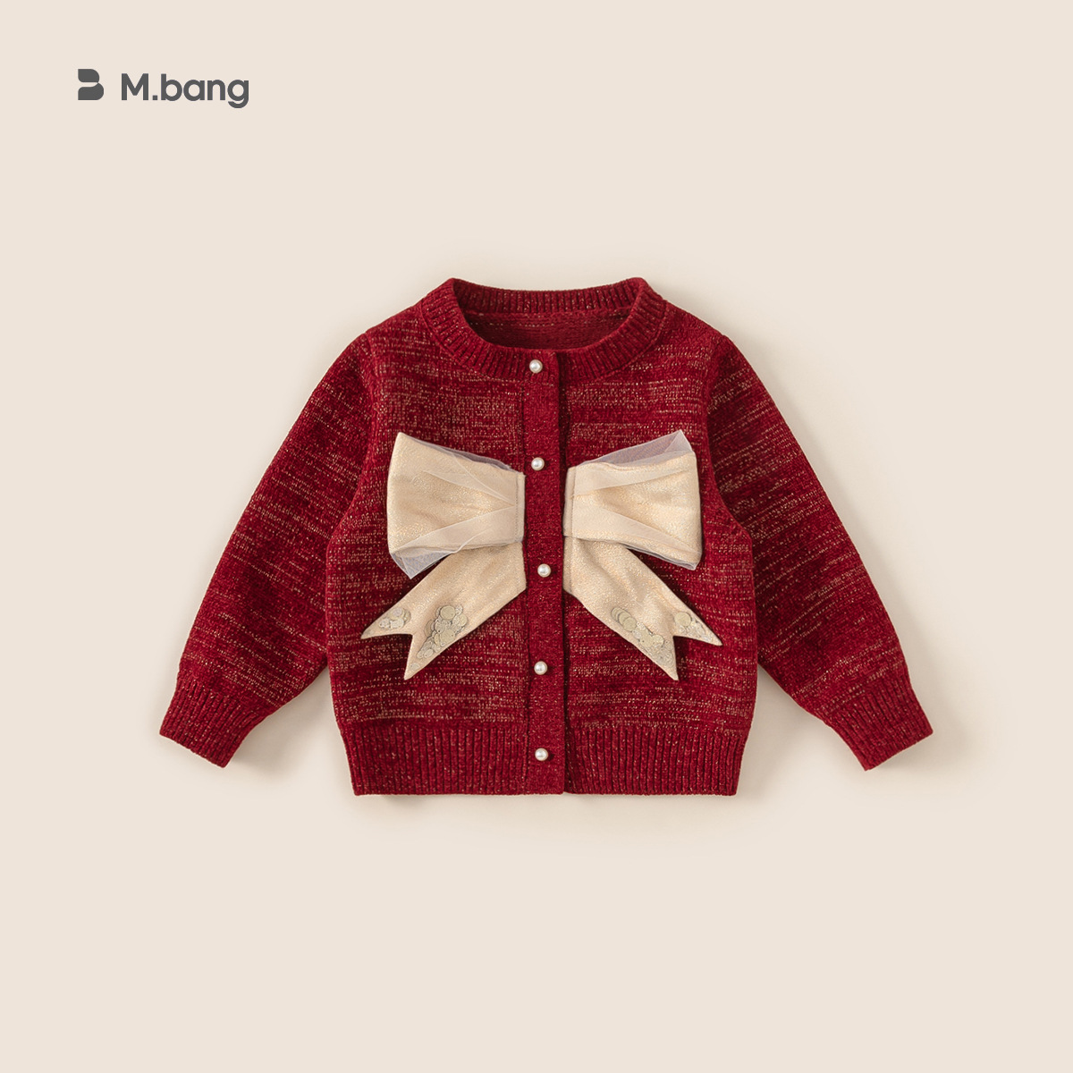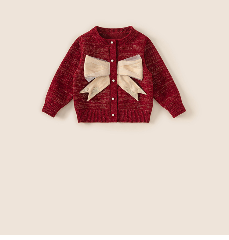 유바오 아동복 여아 리본 스웨터 가디건 가을 겨울 레드 신상 아기 크리스마스 새해 니트 코트