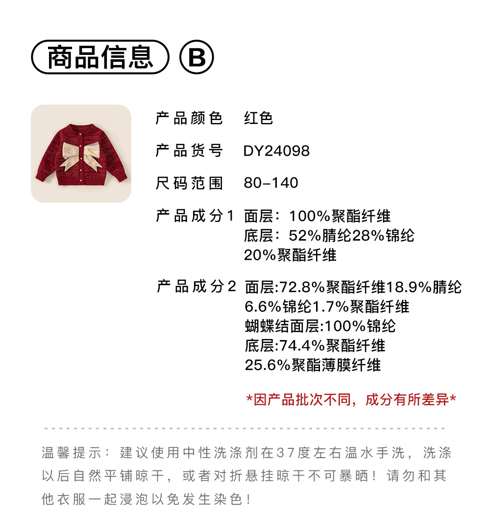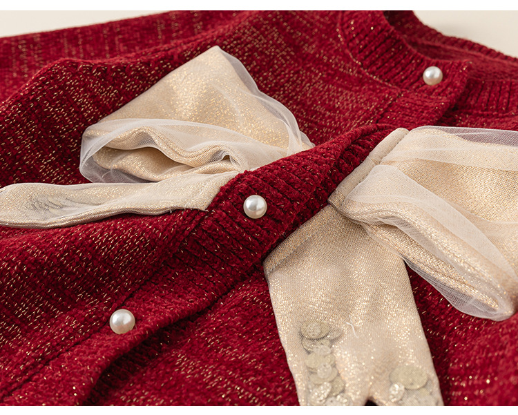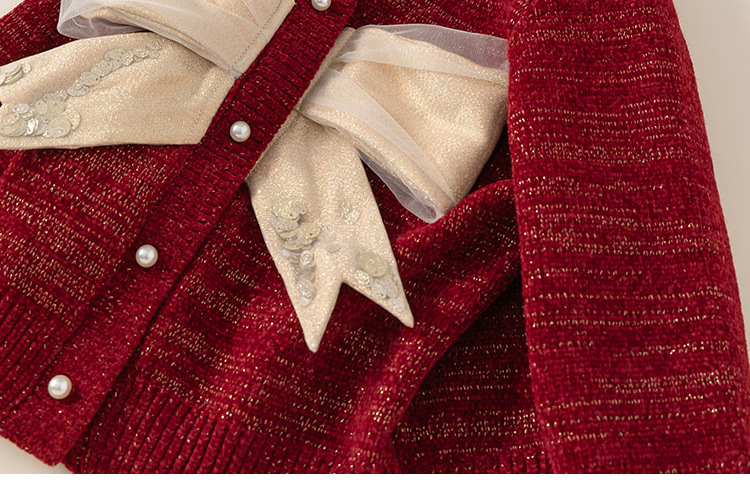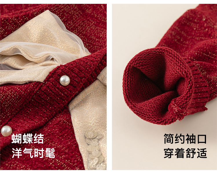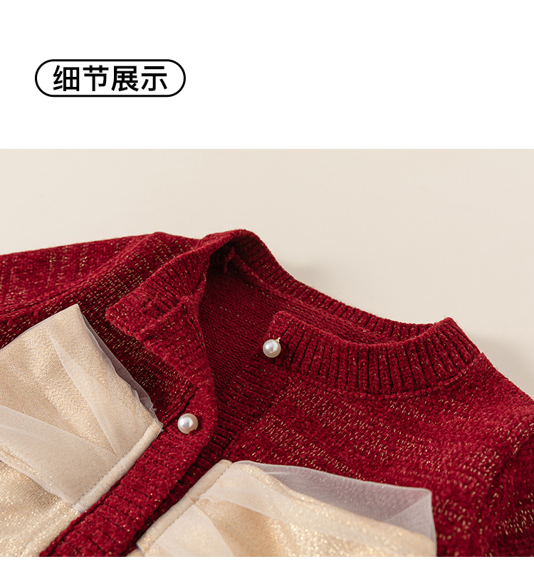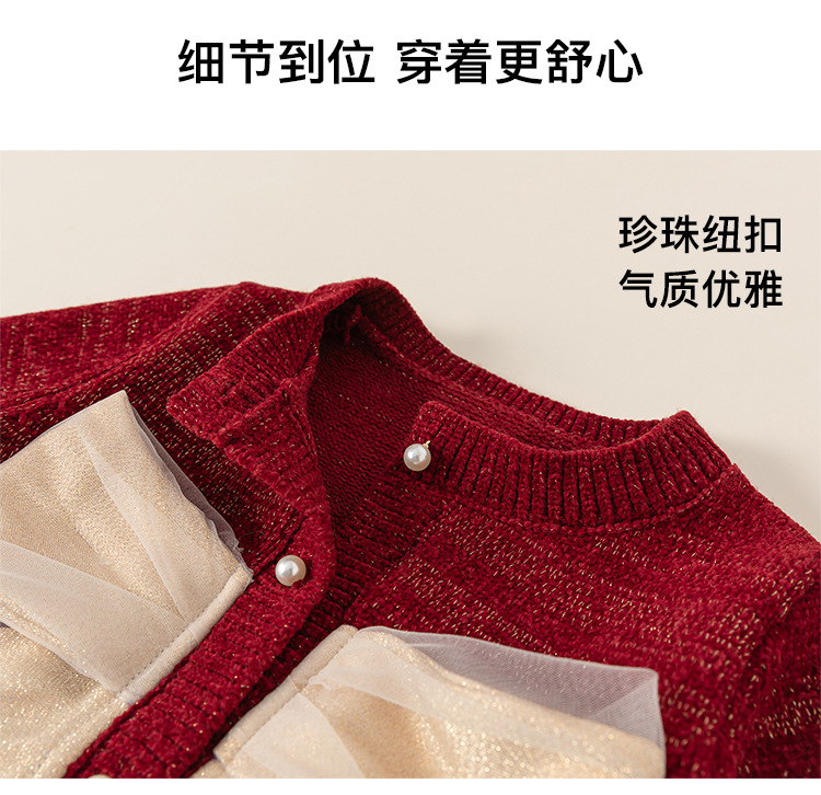 유바오 아동복 여아 리본 스웨터 가디건 가을 겨울 레드 신상 아기 크리스마스 새해 니트 코트