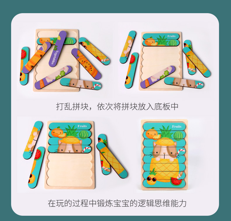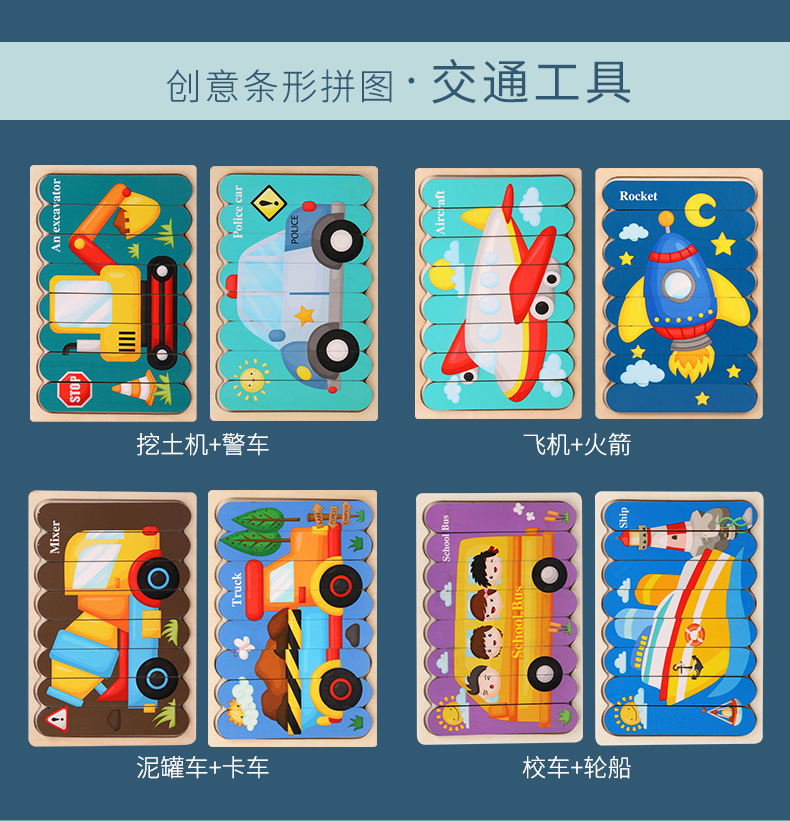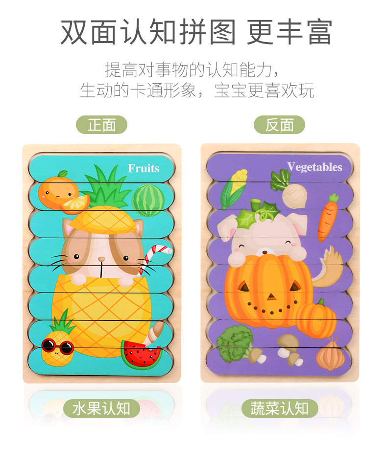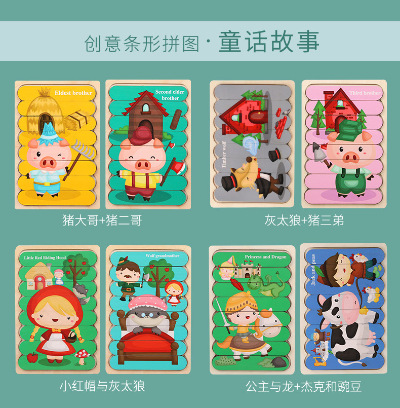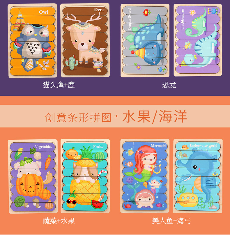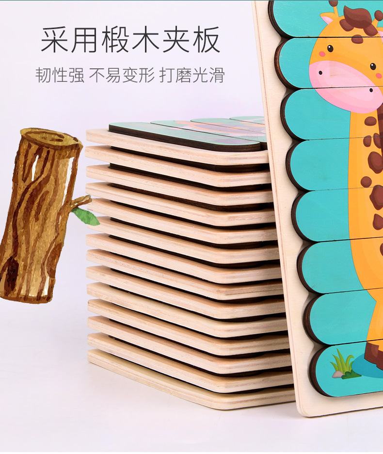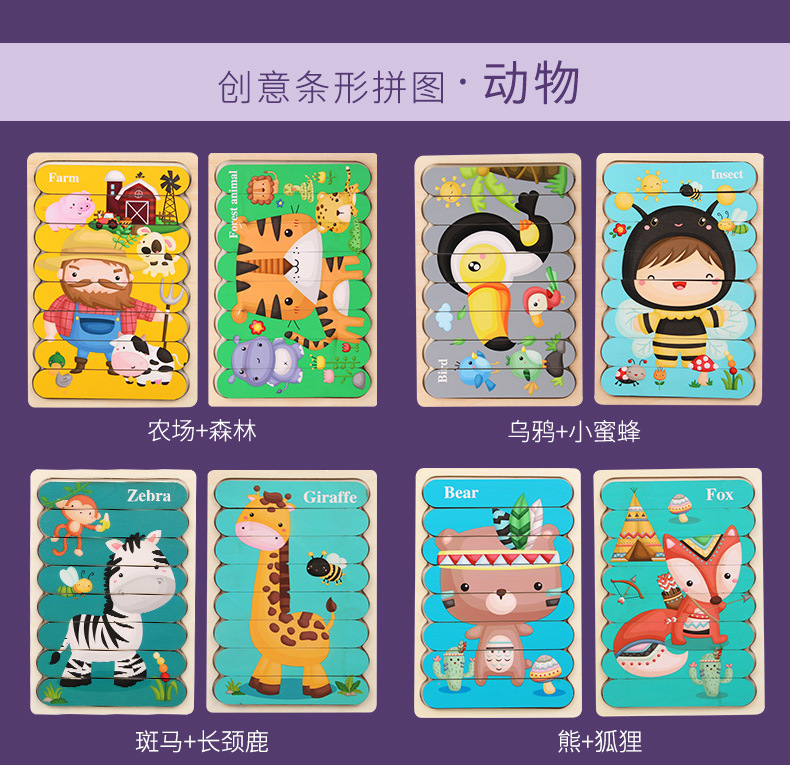 국경 간 나무 창조적 인 스트립 퍼즐 어린이 조기 교육 깨달음인지 양면 만화 동물 퍼즐 장난감 기타