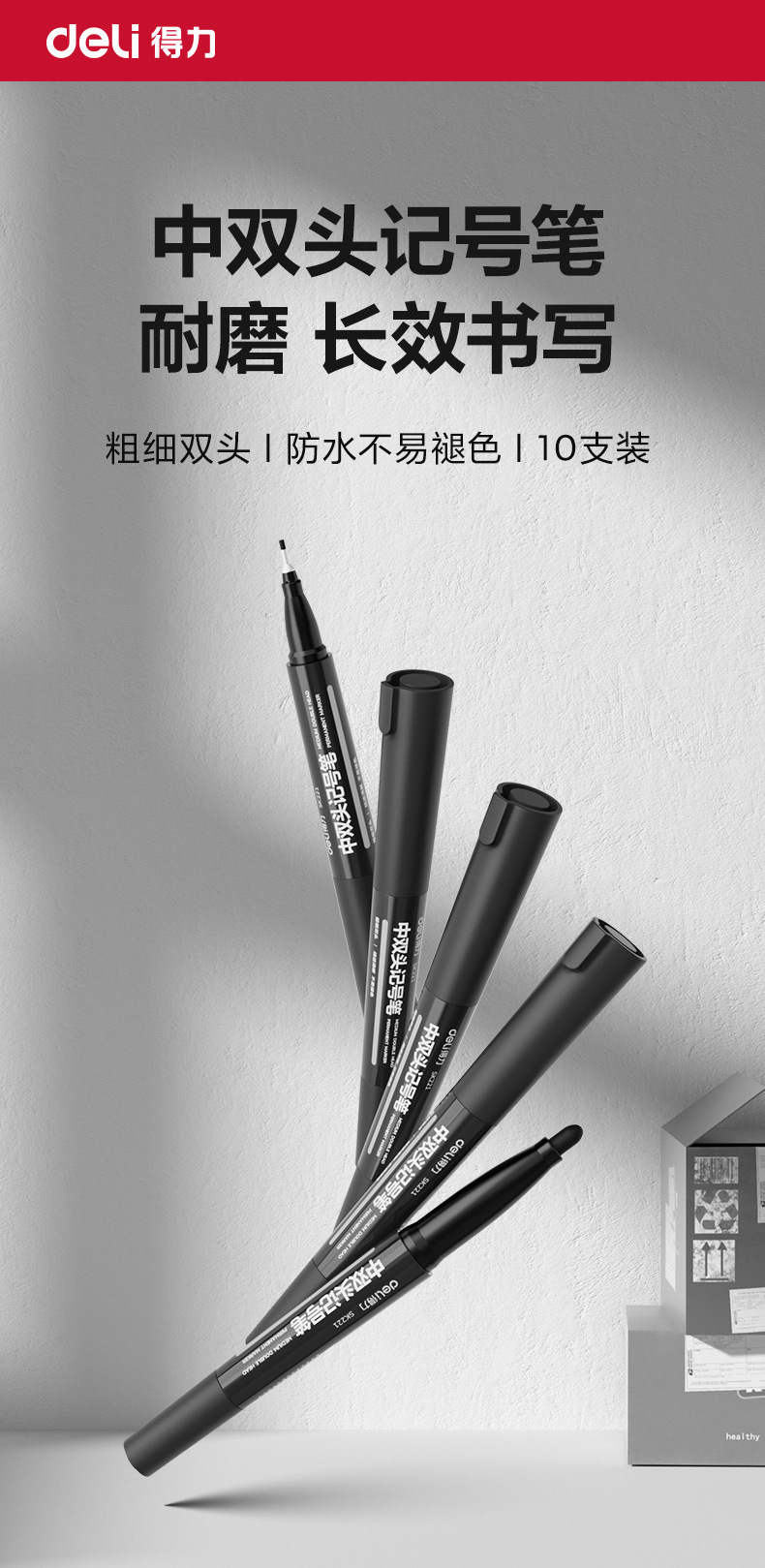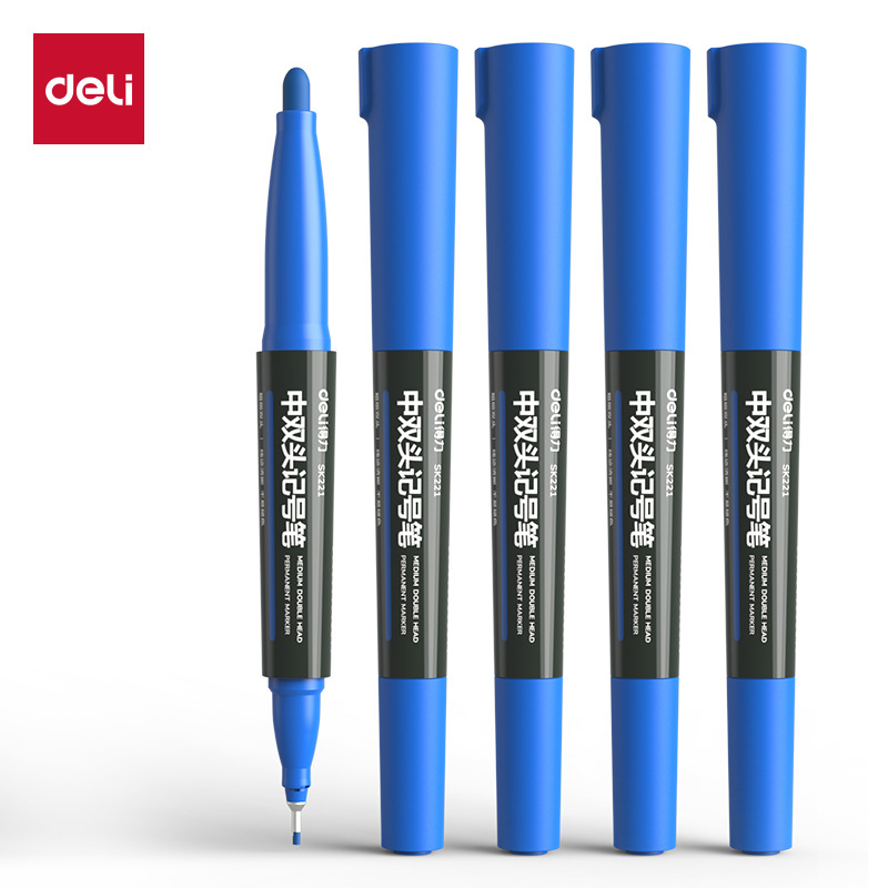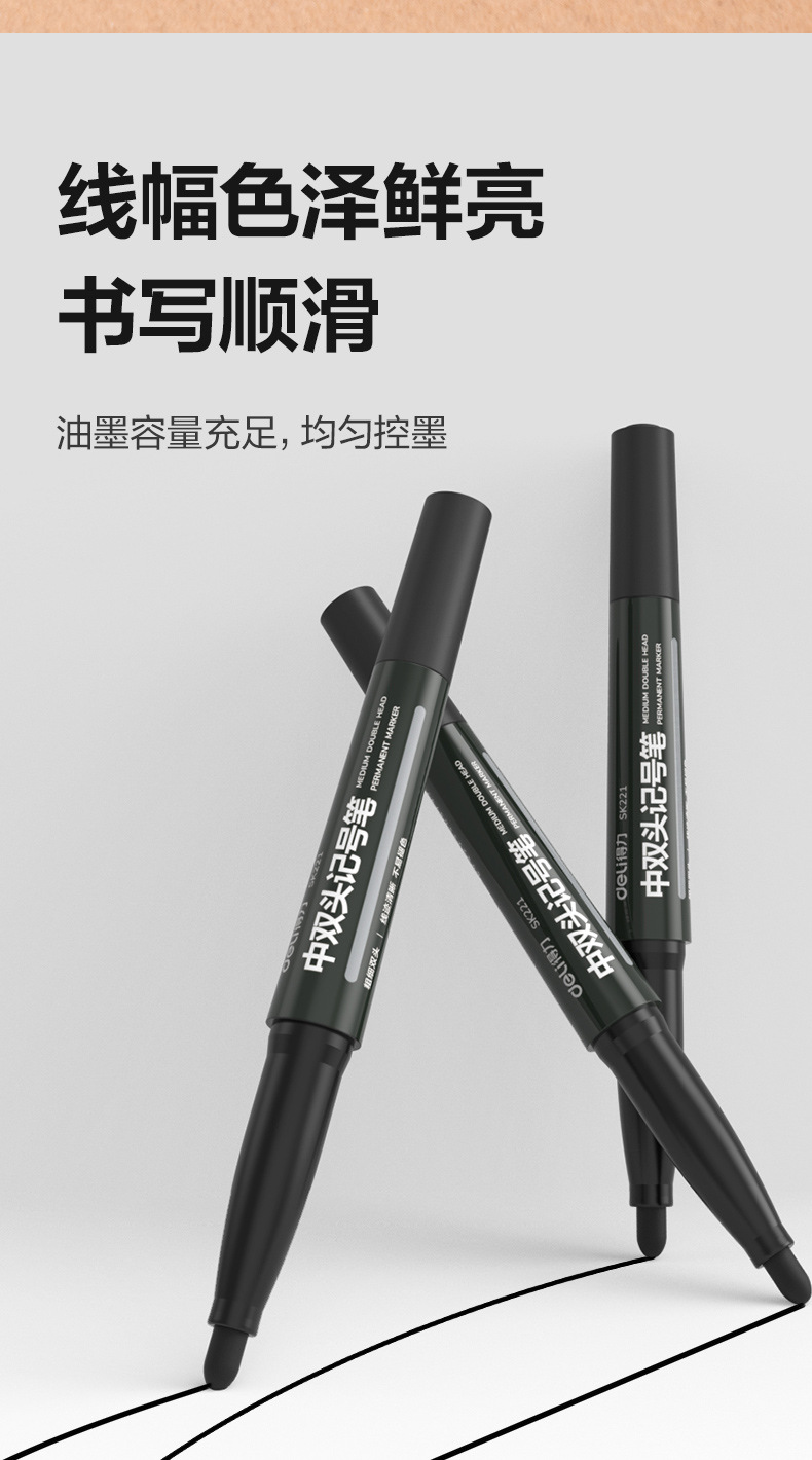 델리 SK221 양두 마커 블랙 중간 두꺼운 방수 빠른 건조 마커 범용 비 페이딩 물류 펜스토어 가기