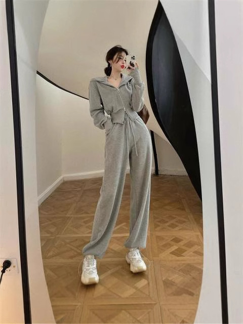 캐주얼 스포츠 세트 여성의 봄과 가을 2024 새로운 스타일 유행 높은 허리 스웨트 셔츠 2 개 세트 이른 가을스토어 가기