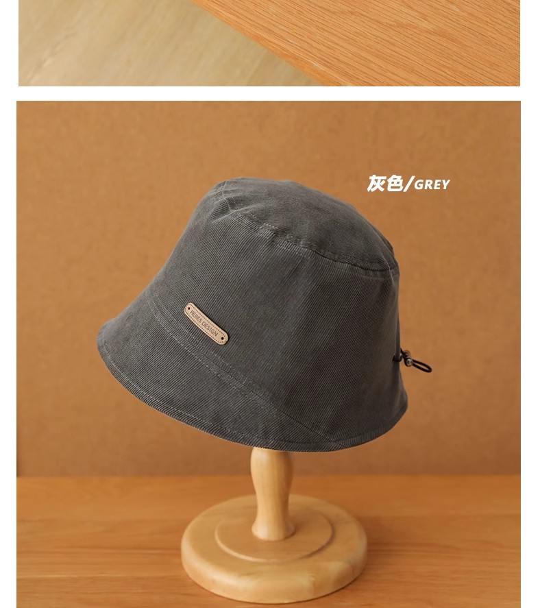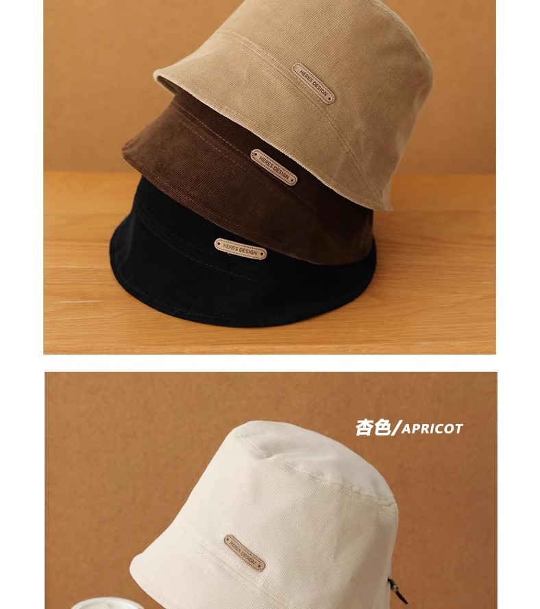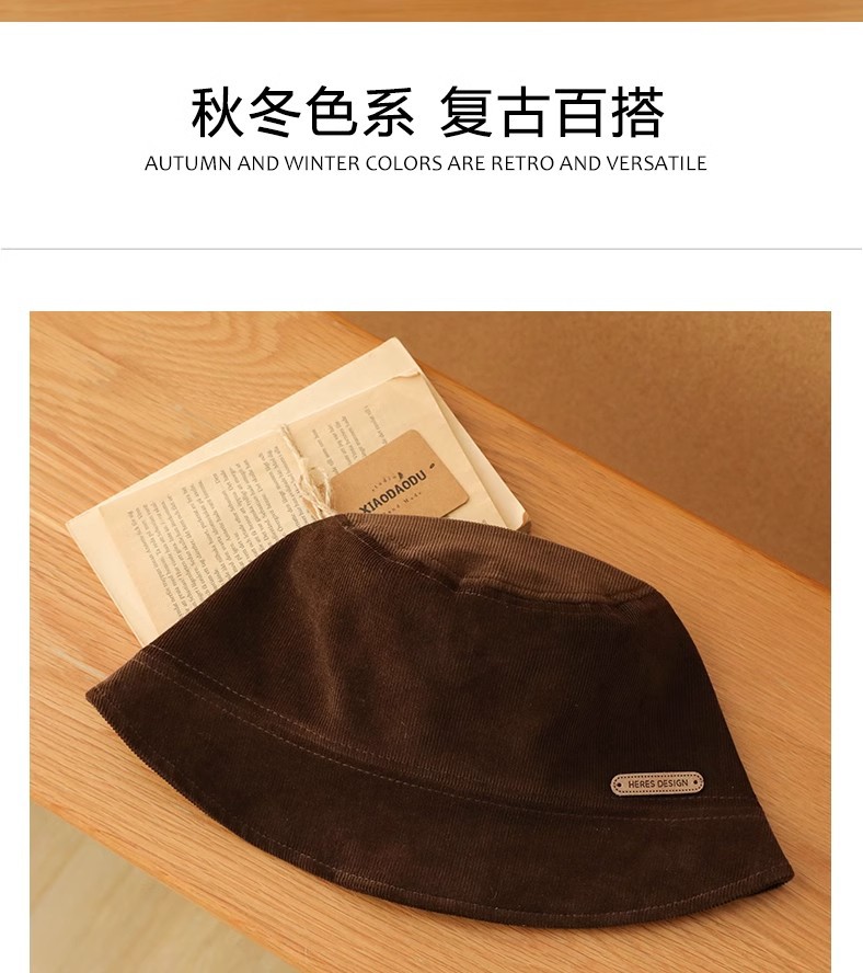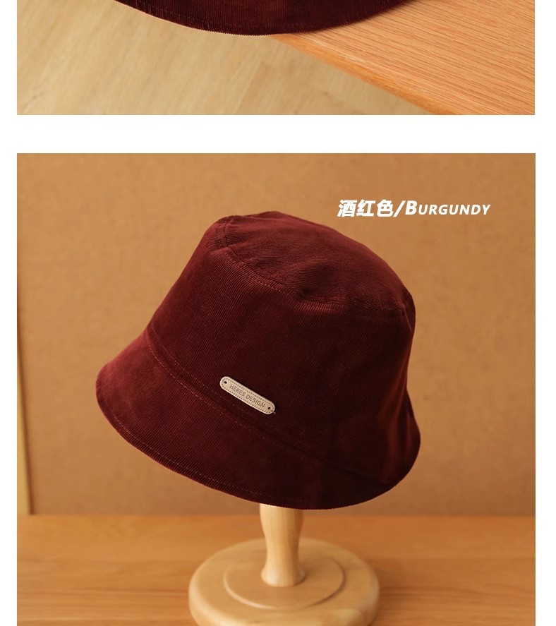 새로운 코듀로이 플랫 탑 버킷 모자 여성 플레인 올 매치 어부 모자 유행 간단한 얼굴 작은 분지 모자를 보여주는 가을 겨울스토어 가기
