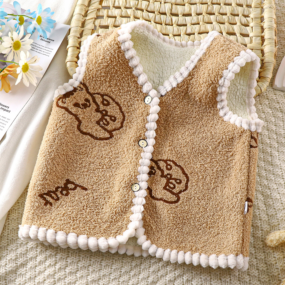 가을과 겨울 신복 조끼 어린이 기모 양복 조끼 양면 벨벳 소년 소녀 만화 따뜻한 카디건 아동복 도매