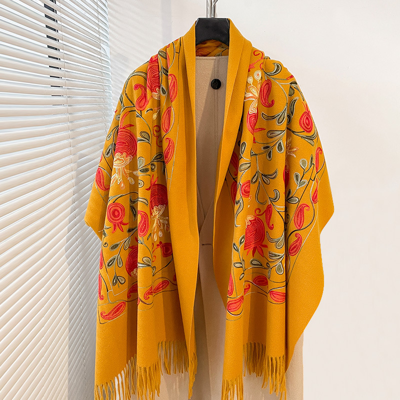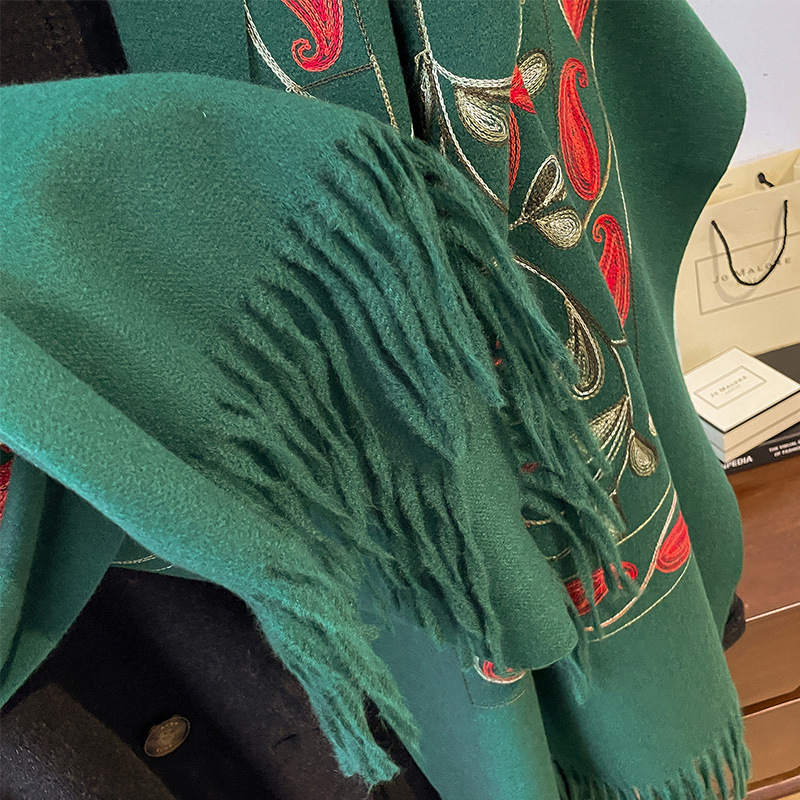 가을과 겨울 새로운 대비 컬러 석류 잎 양면 캐시미어 따뜻한 스카프 여성 민족 스타일 여행 목도리스토어 가기