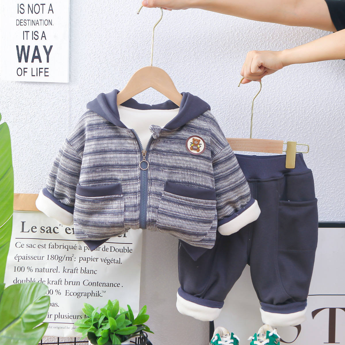대외 무역 소년 겨울 벨벳 세트 2024 새로운 어린이 서양식 두꺼운 겨울 아기 한국식 투피스 유행 세트스토어 가기