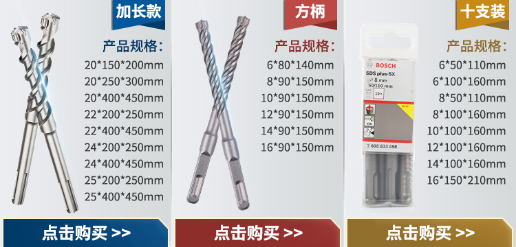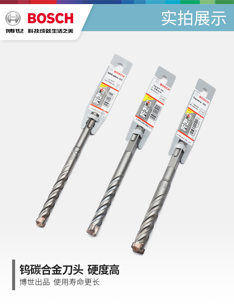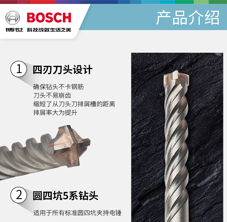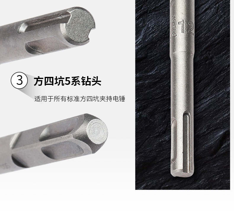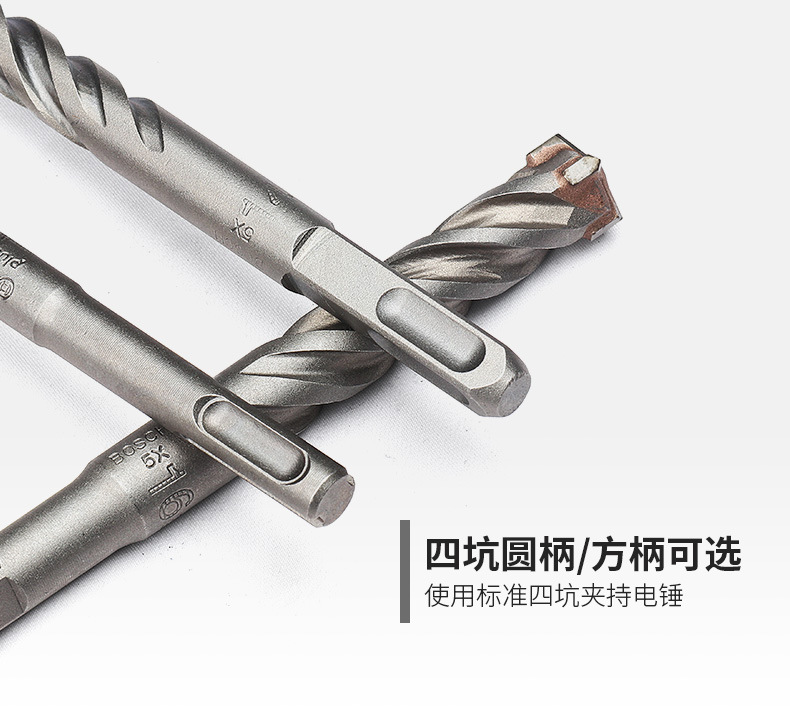 Bosch 5 시리즈 전기 해머 타악기 드릴 비트 2 개의 그루브 콘크리트 둥근 사각형 생크 헤드 4 개의 구덩이가 벽 회전 헤드를 통해 벽을 통과합니다.스토어 가기