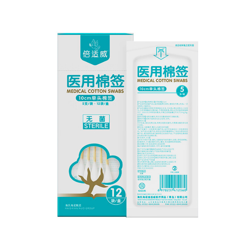 Heinobiwei 의료 면봉 10cm5 팩 의료 살균 가정용 청소 및 소독 상처 청소