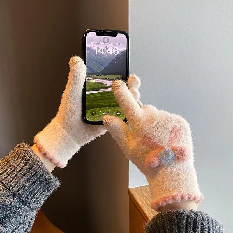 가을과 겨울에 여성용 터치 스크린 니트 장갑스토어 가기