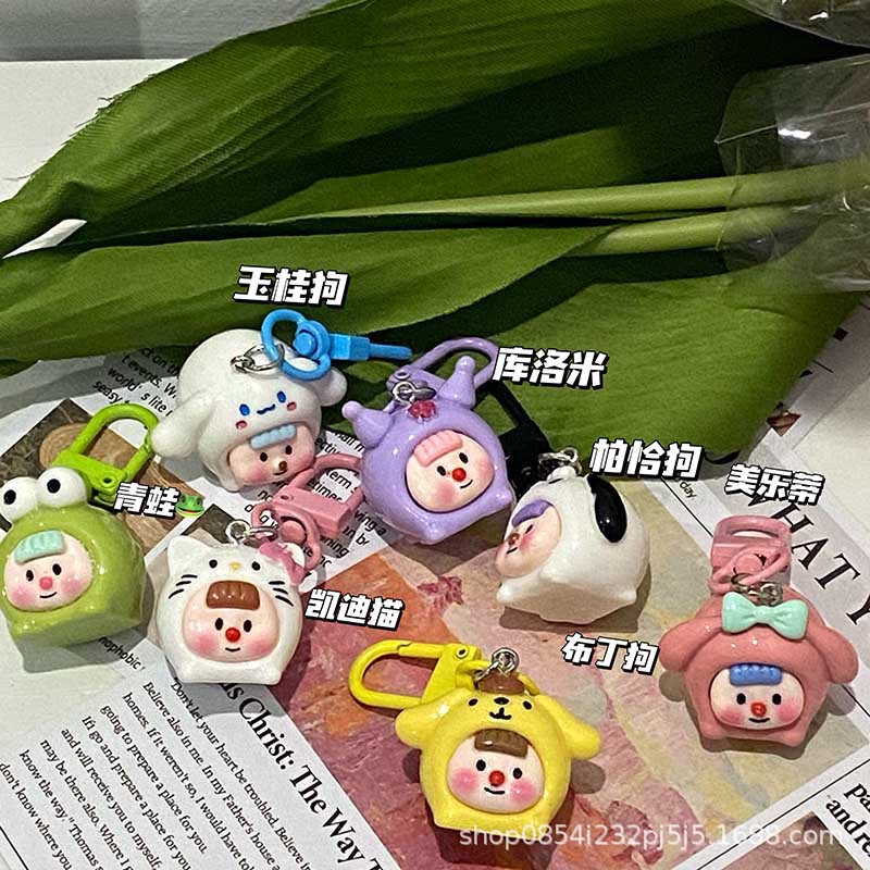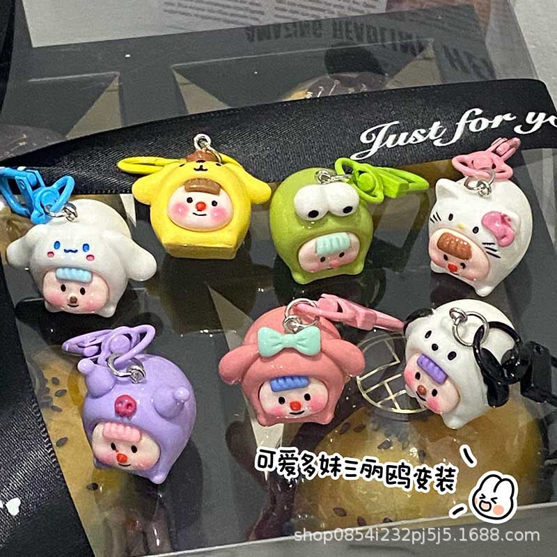 귀여운 3 차원 멀티 자매 Sanlio 키 체인 Ins 달콤한 만화 학교 가방 펜던트 여자 친구 선물 액세서리 보석스토어 가기
