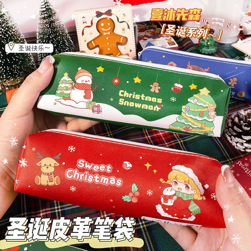 높은 Yan 가치 크리스마스 문구 가방 학생 문구 대용량 연필 가방 크리스마스 선물 PU 방수 연필 가방스토어 가기