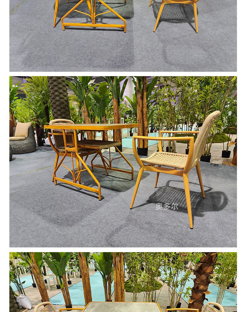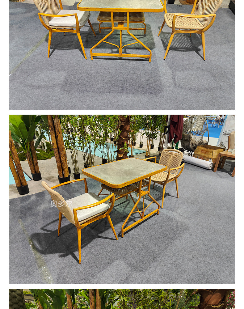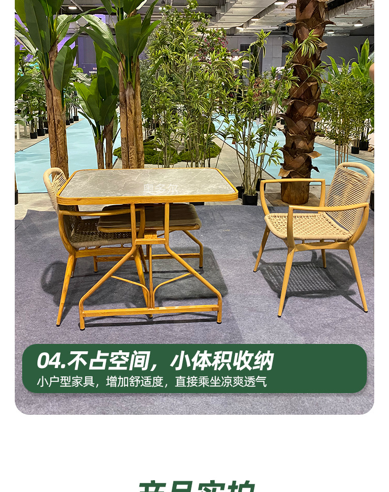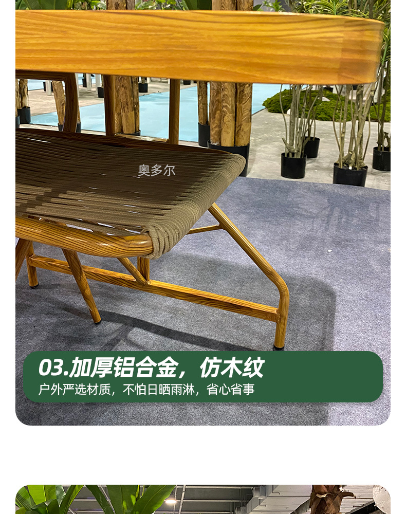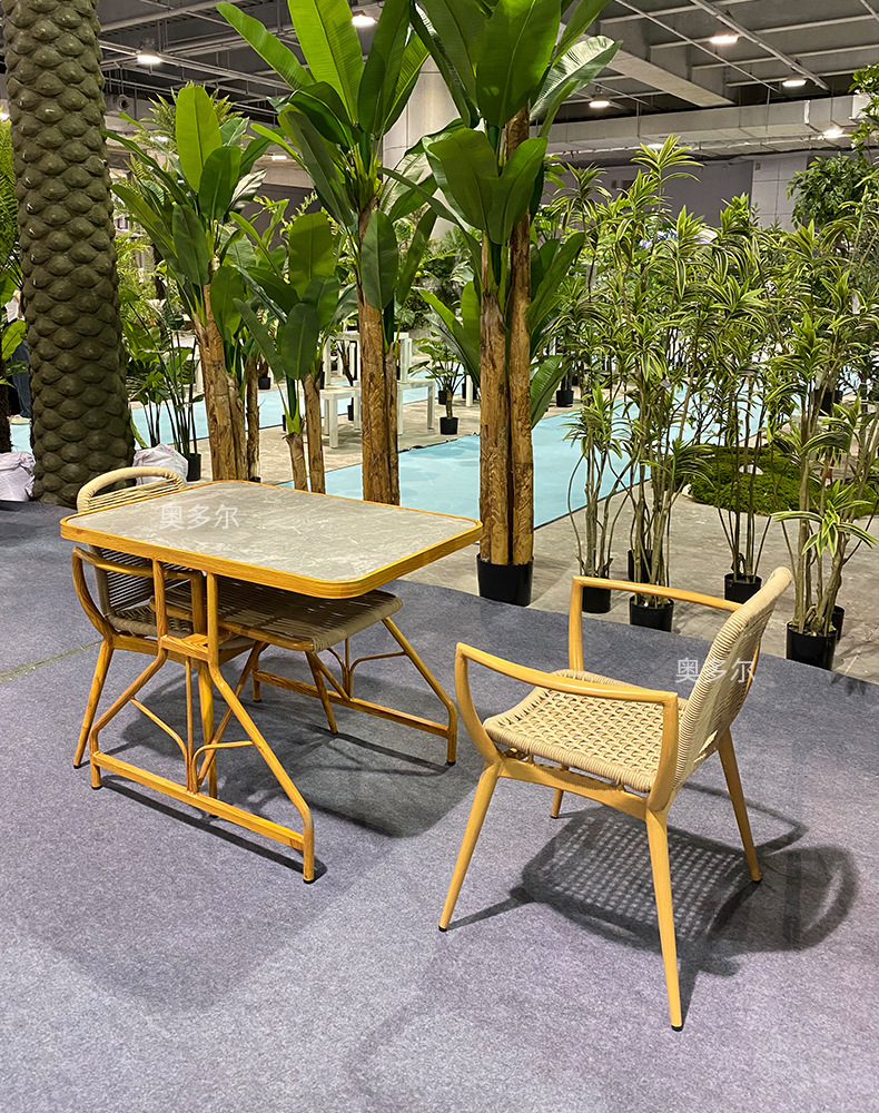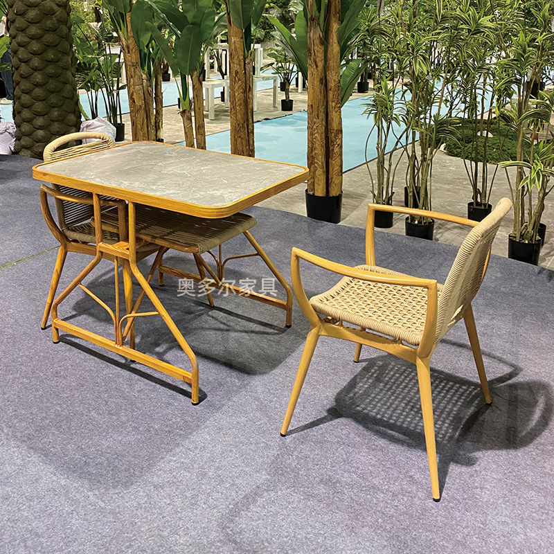야외 저장 테이블 및 의자 조합 알루미늄 합금 모조 우드 그레인 테이블 야외 오픈 에어 커피 의자 우유 차 가게 레저 테이블 및 의자