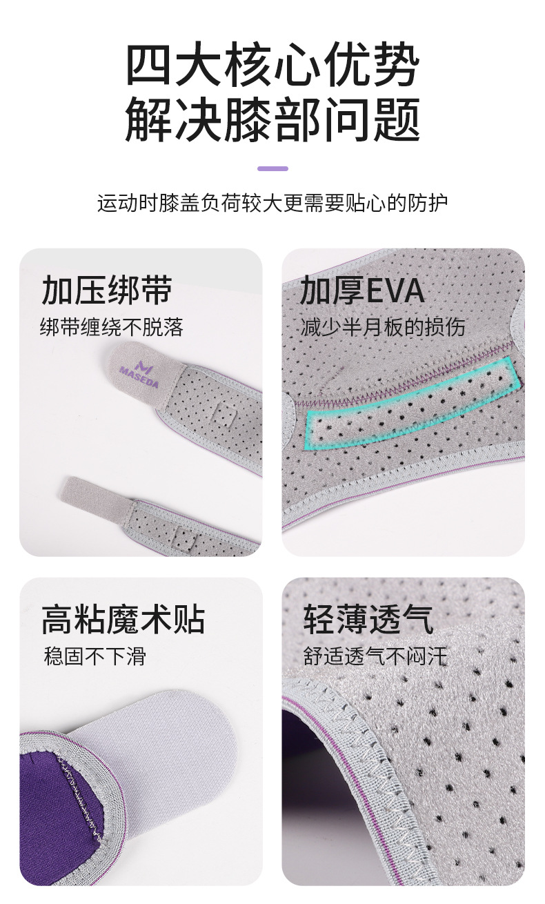 경량 통기성 천공 된 압축 무릎 패드 슬개골 무릎 패드 열려있는 조절 가능한 스트랩 무릎 패드는 충돌 방지 아래로 미끄러지지 않습니다.스토어 가기
