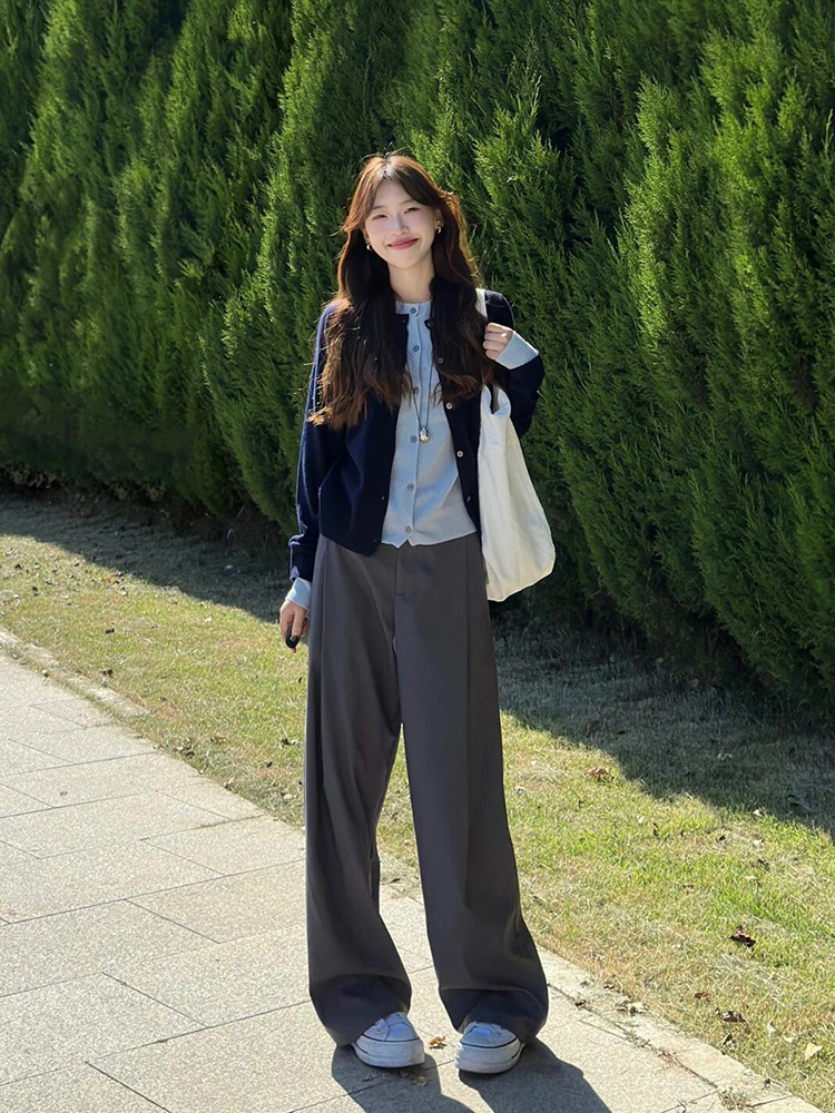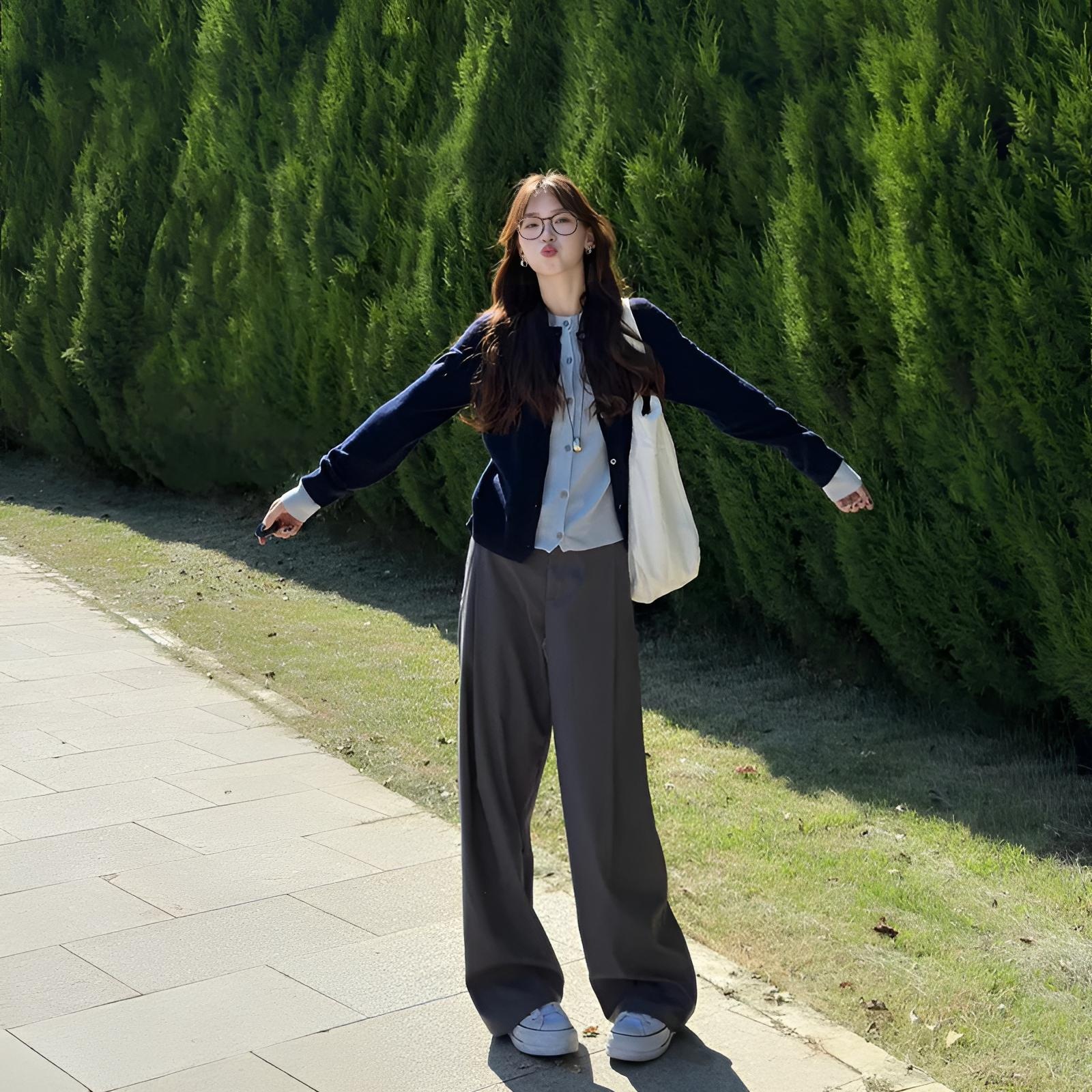 한국식 소프트 왁스 크루 넥 네이비 스웨터 코트 여성용 2024 가을 슬림핏 짧은 니트 카디건 탑스토어 가기