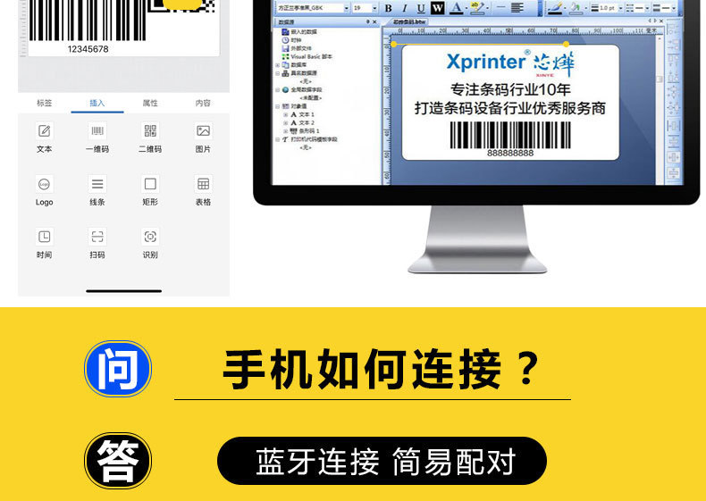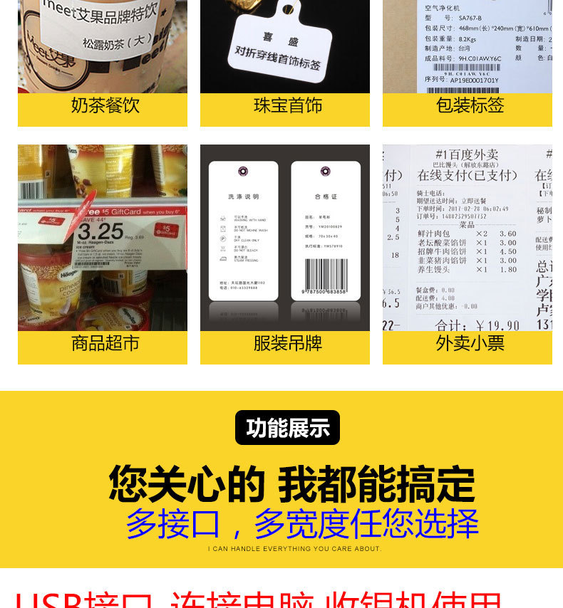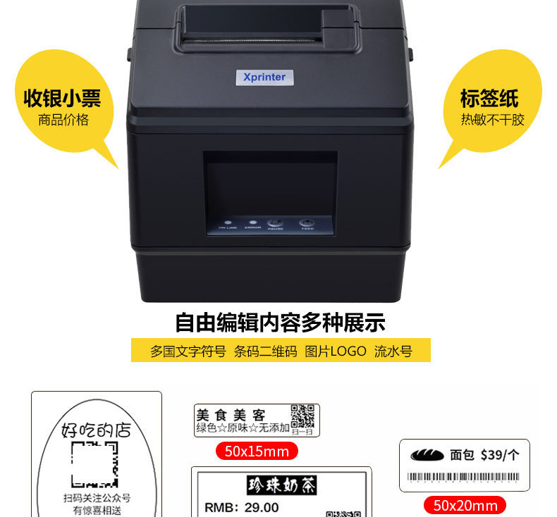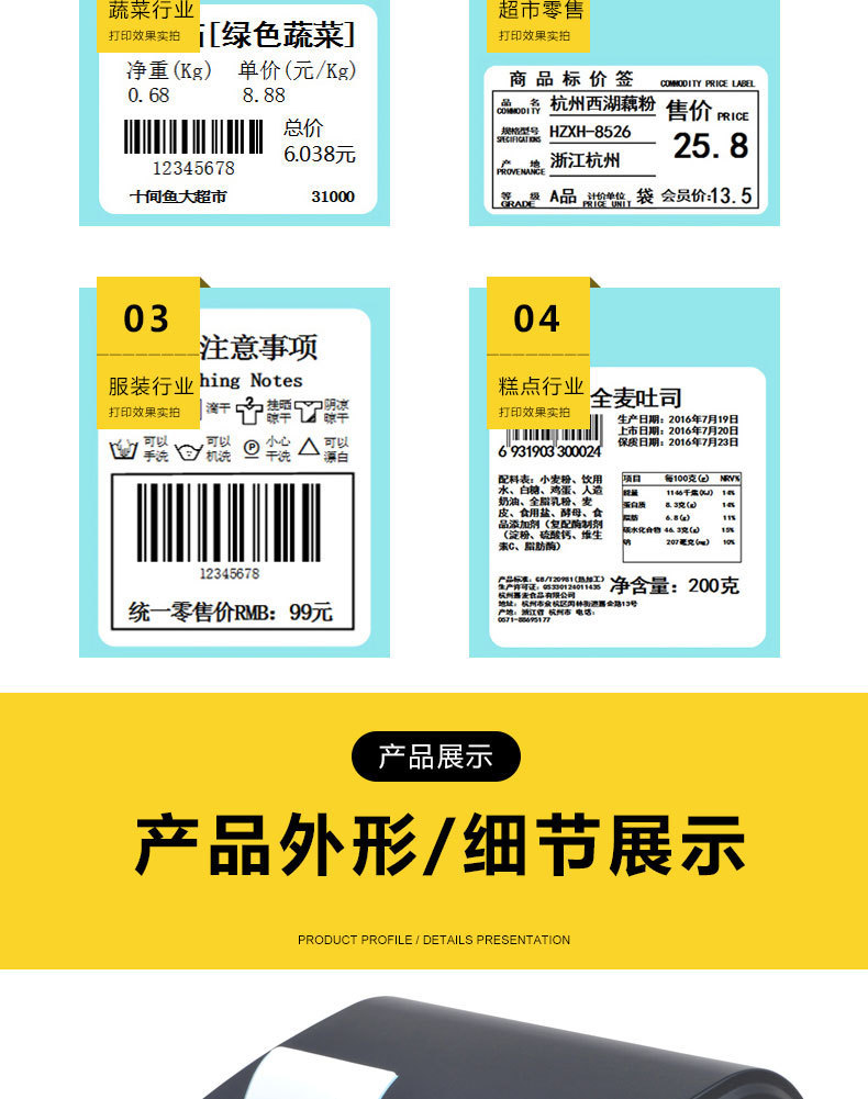 Xinyou XP-320B/365B 열전사 바코드 라벨 프린터 프론트 데스크 슈퍼 티켓 발권 블루투스 인쇄 영수증 기계스토어 가기