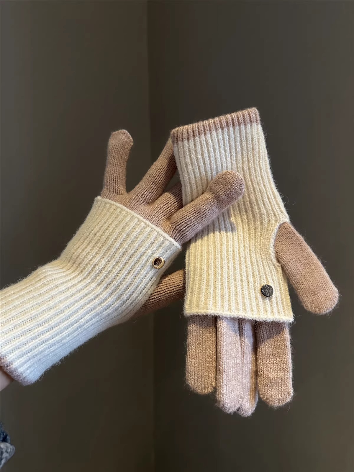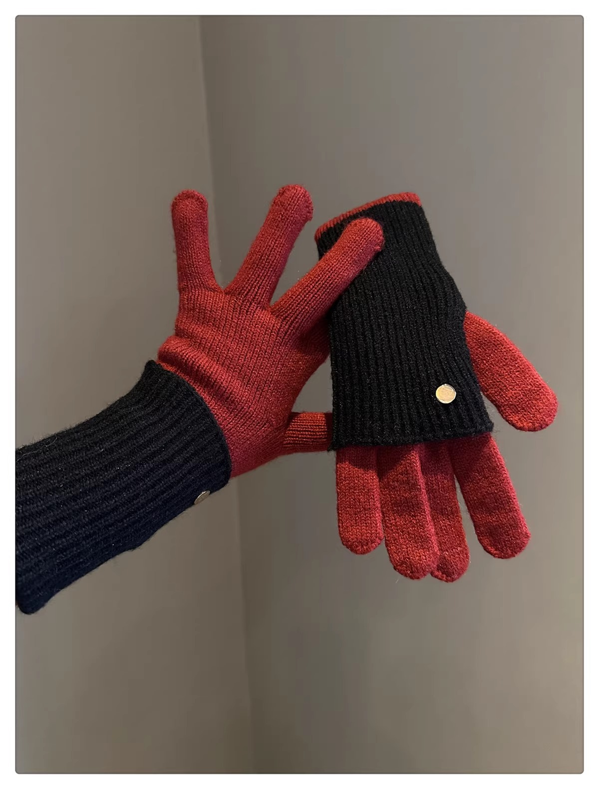 한국 더블 레이어 샌드위치 길고 짧은 듀얼 사용 컬러 블록 니트 울 장갑 여성용 울 오픈 손가락 터치 스크린 따뜻한 장갑