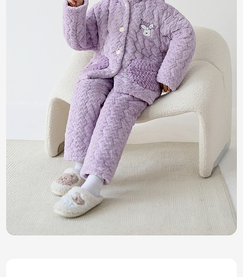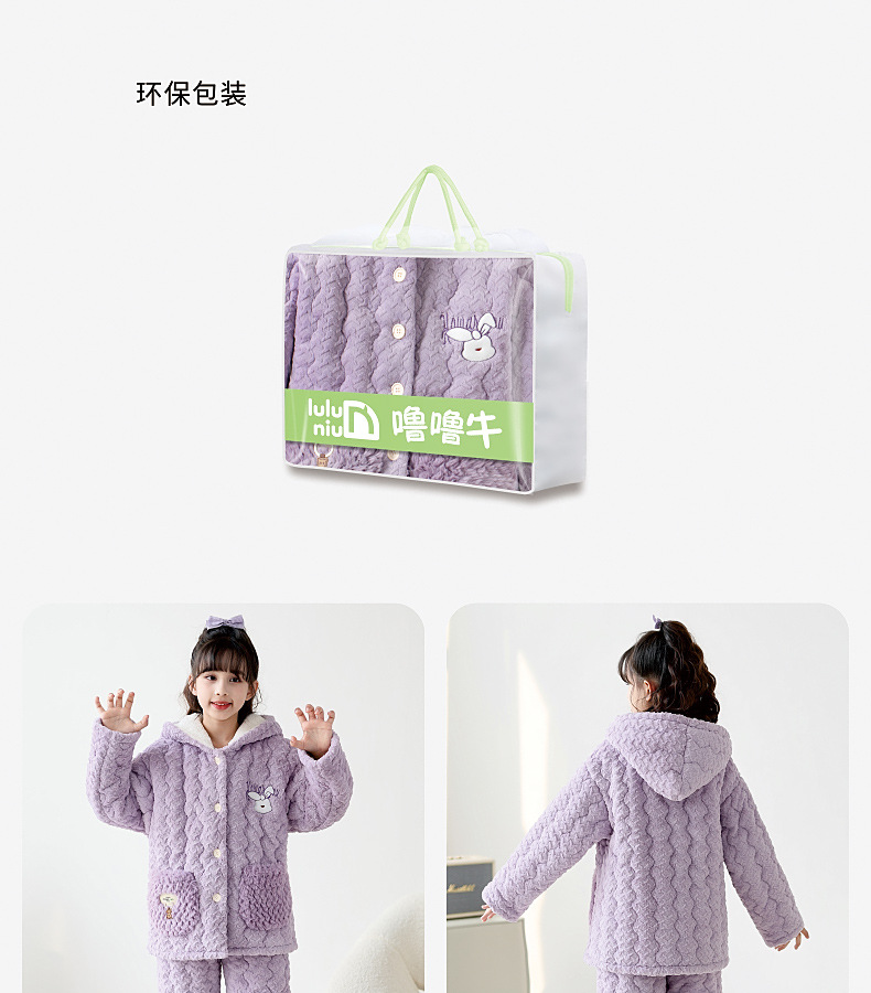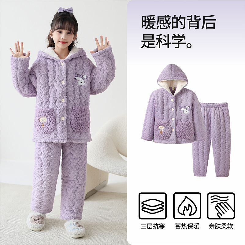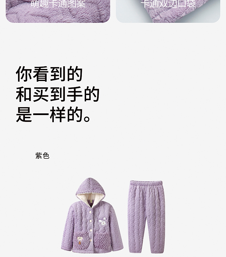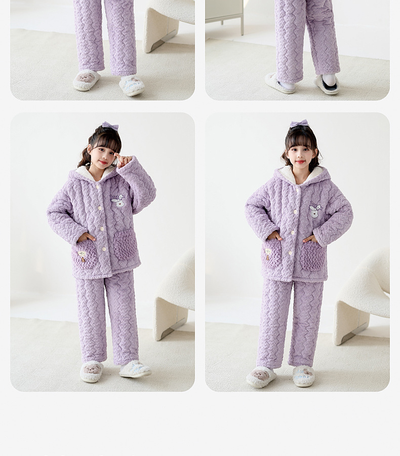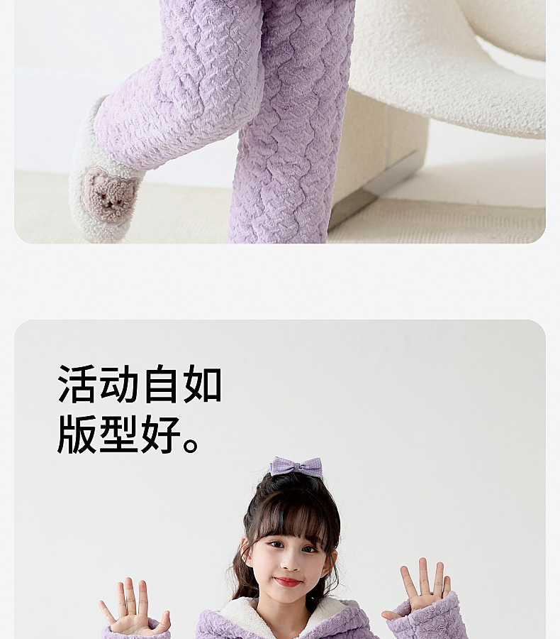 2024 겨울 어린이 잠옷 소녀의 산호 벨벳 퀼트 두꺼운 따뜻한 플란넬 홈 옷 중 · 대형 어린이스토어 가기