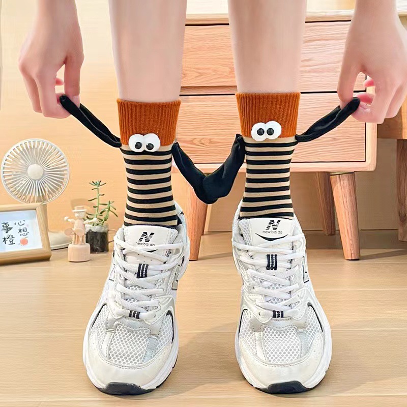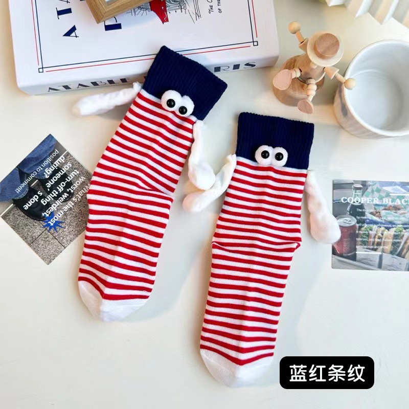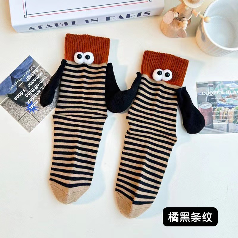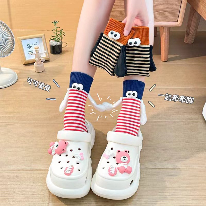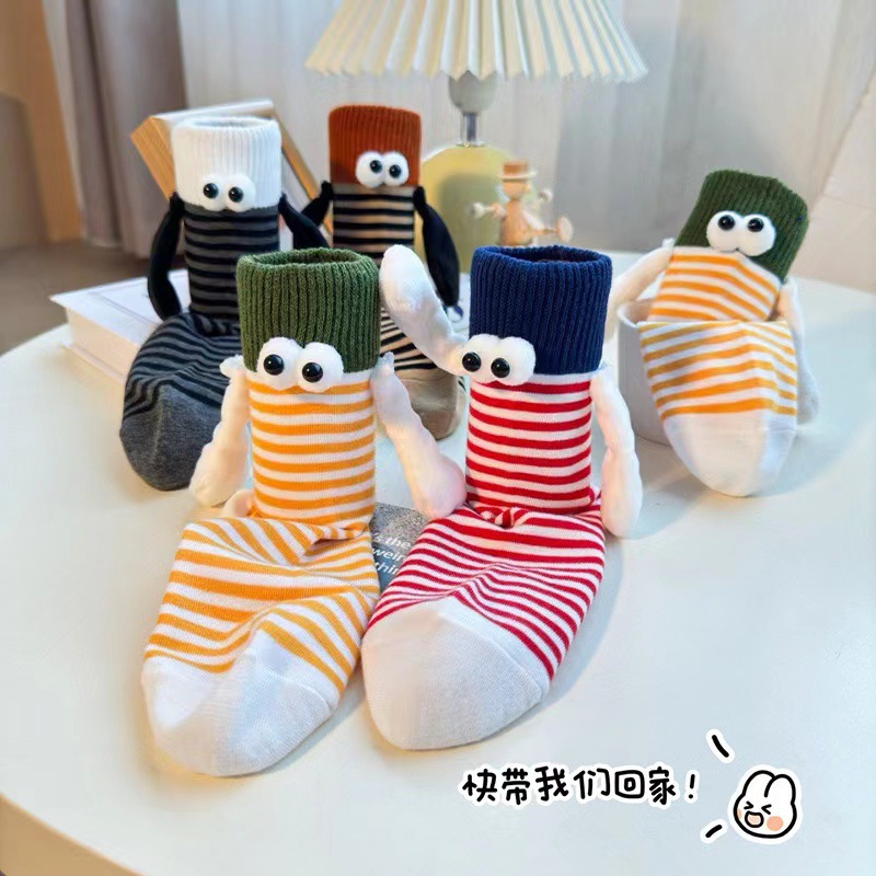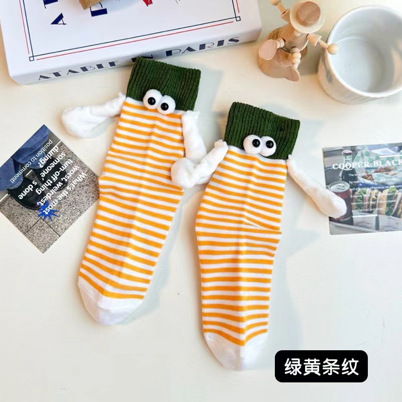 가을 스트라이프 개성 양말 여성용 인스 트렌드 도파민 컬러 시리즈 자석 손잡이 커플 및 친구용 중간 길이 여성 양말