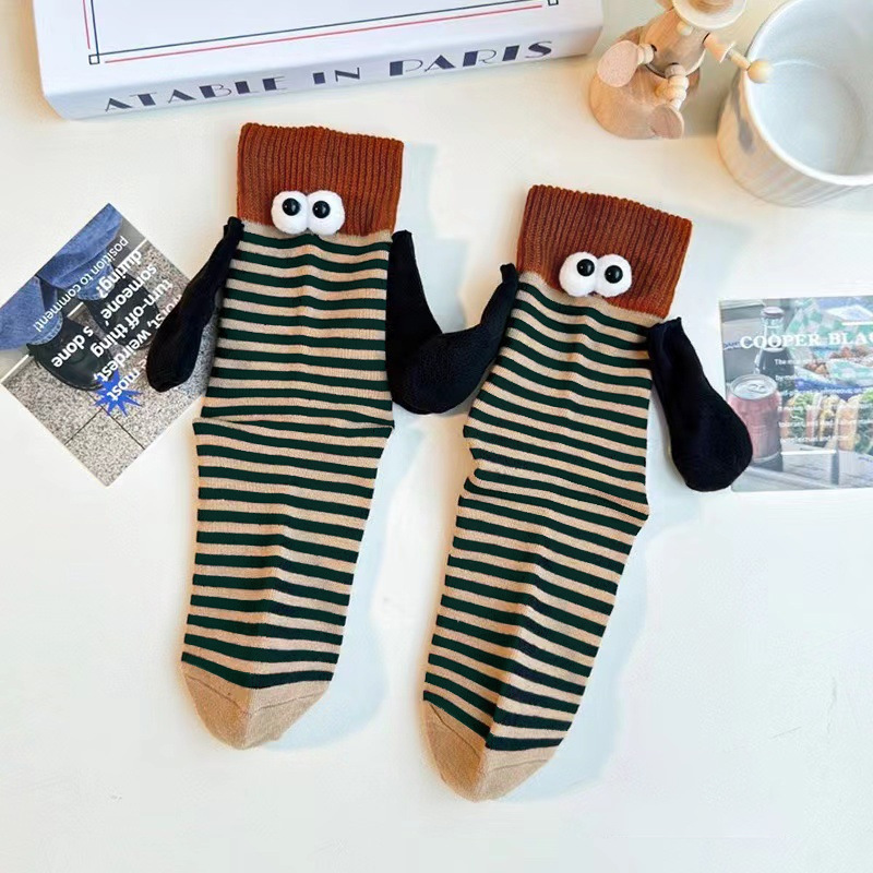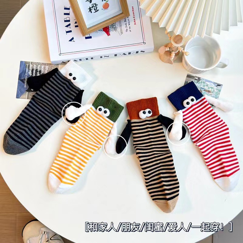 가을 스트라이프 개성 양말 여성용 인스 트렌드 도파민 컬러 시리즈 자석 손잡이 커플 및 친구용 중간 길이 여성 양말스토어 가기
