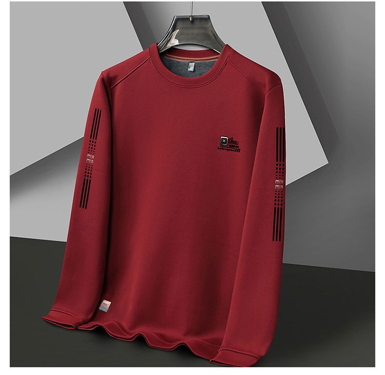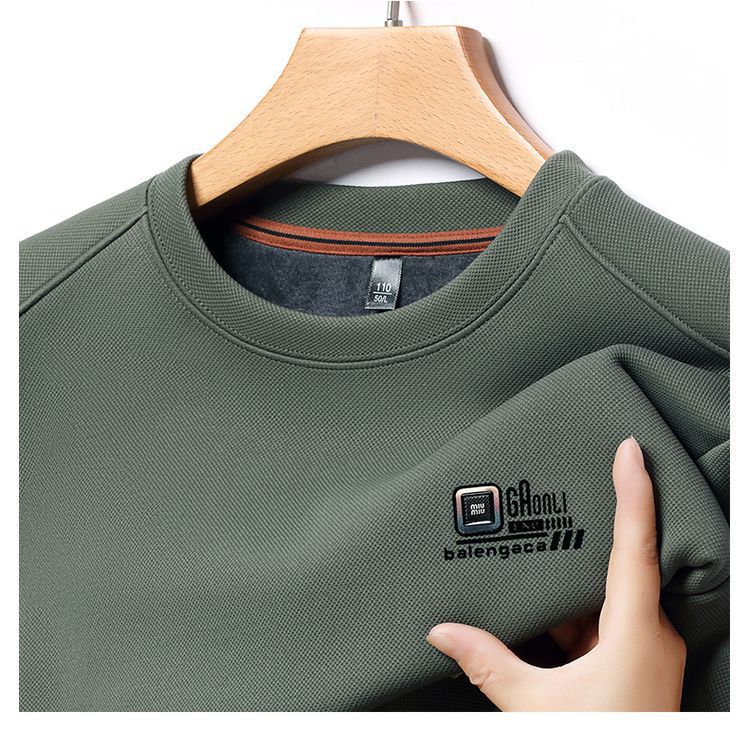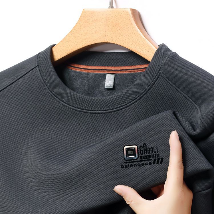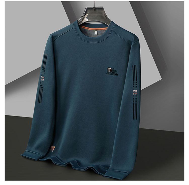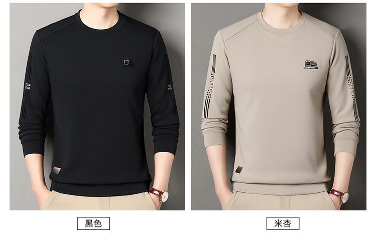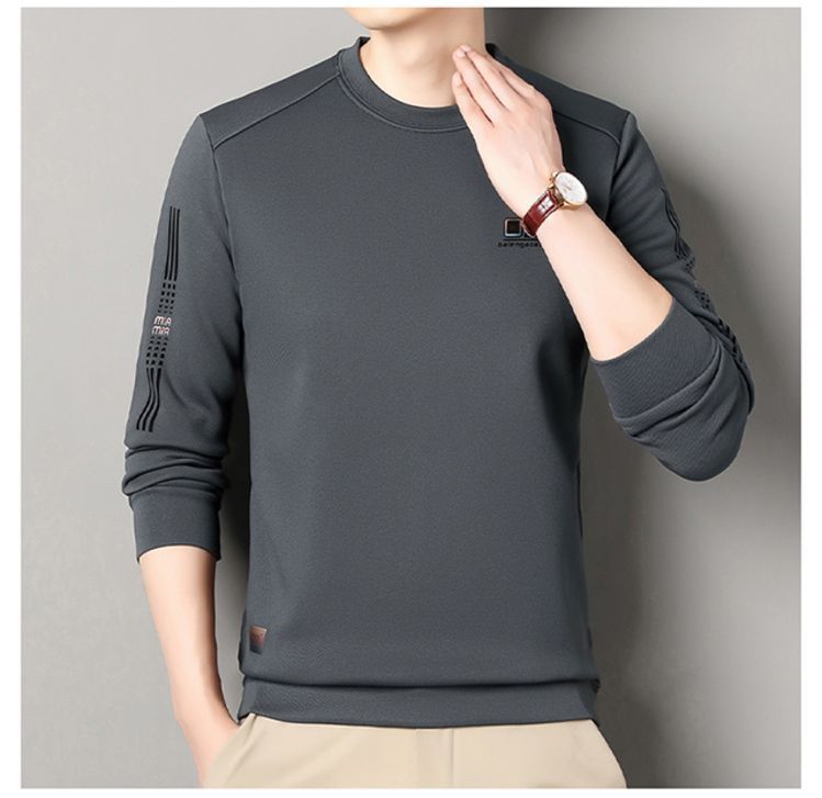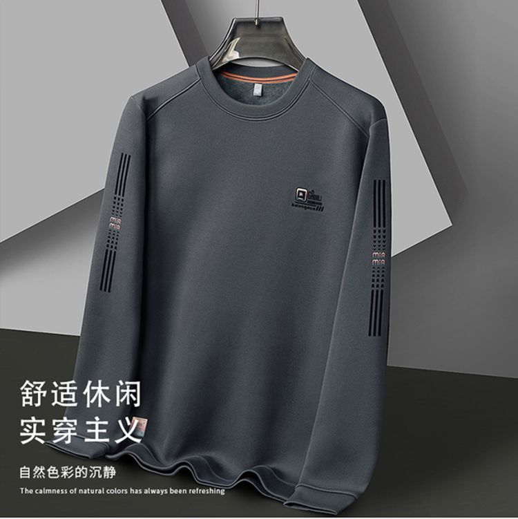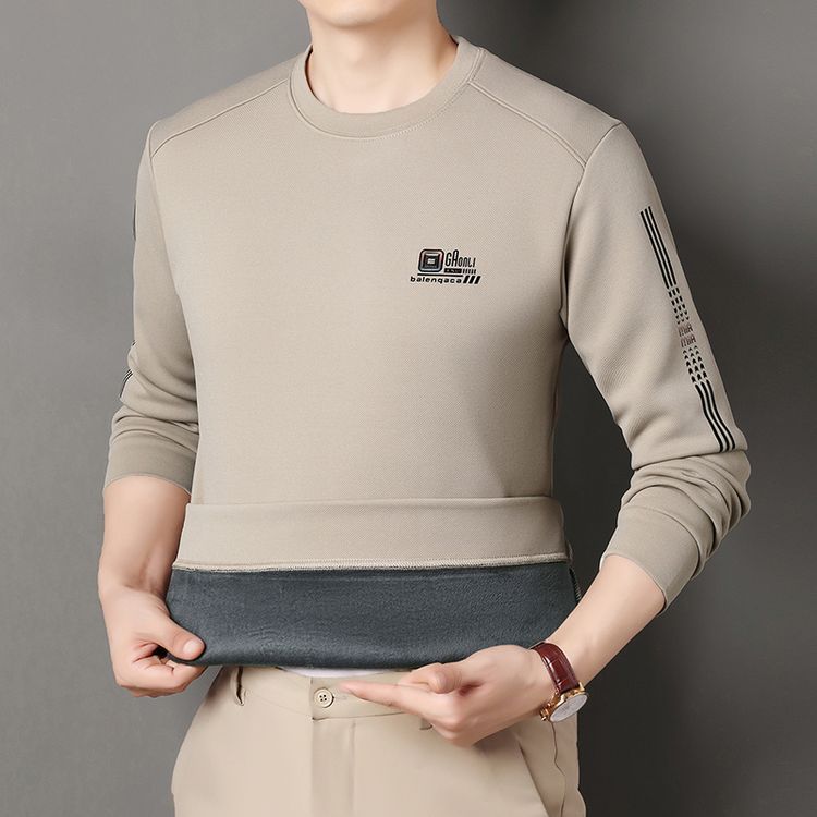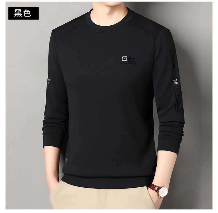 24 가을/겨울 새로운 남자 기모 두꺼운 긴팔 스웨터 캐주얼 올 매치 라운드 넥 슬림베이스 셔츠 탑