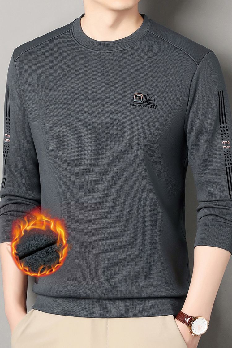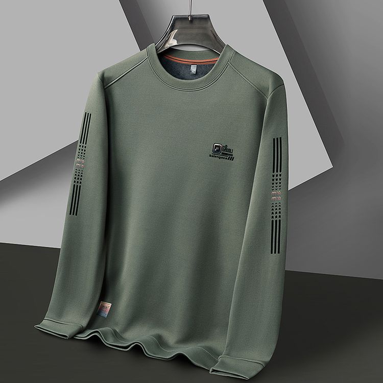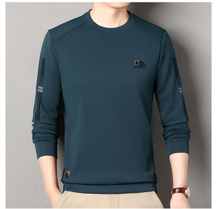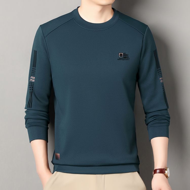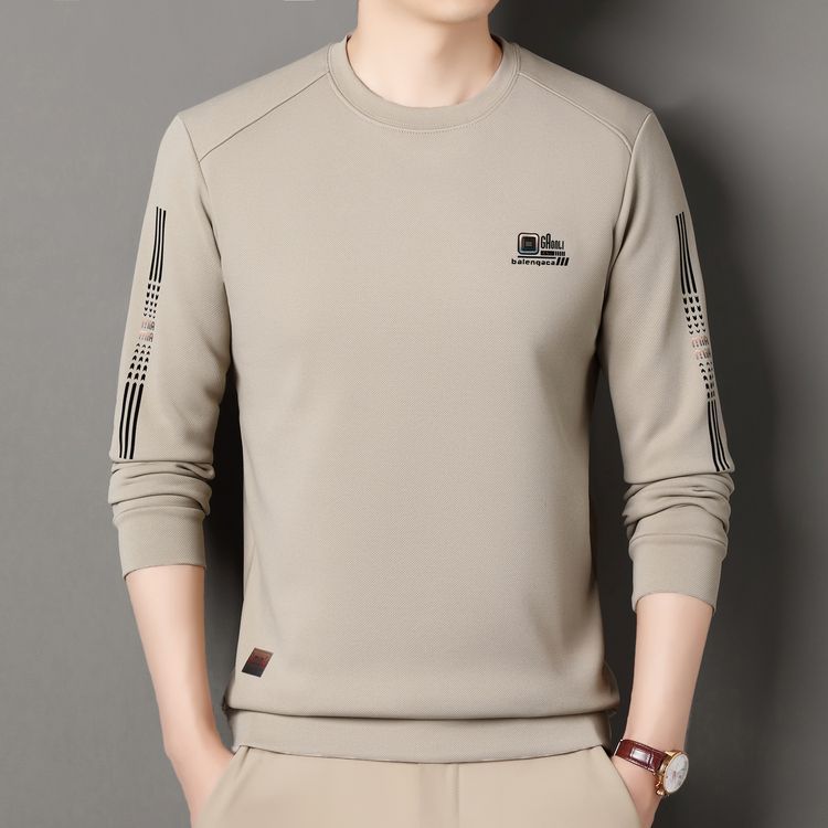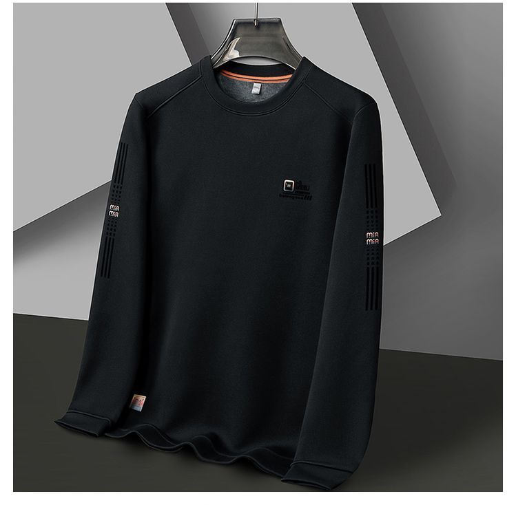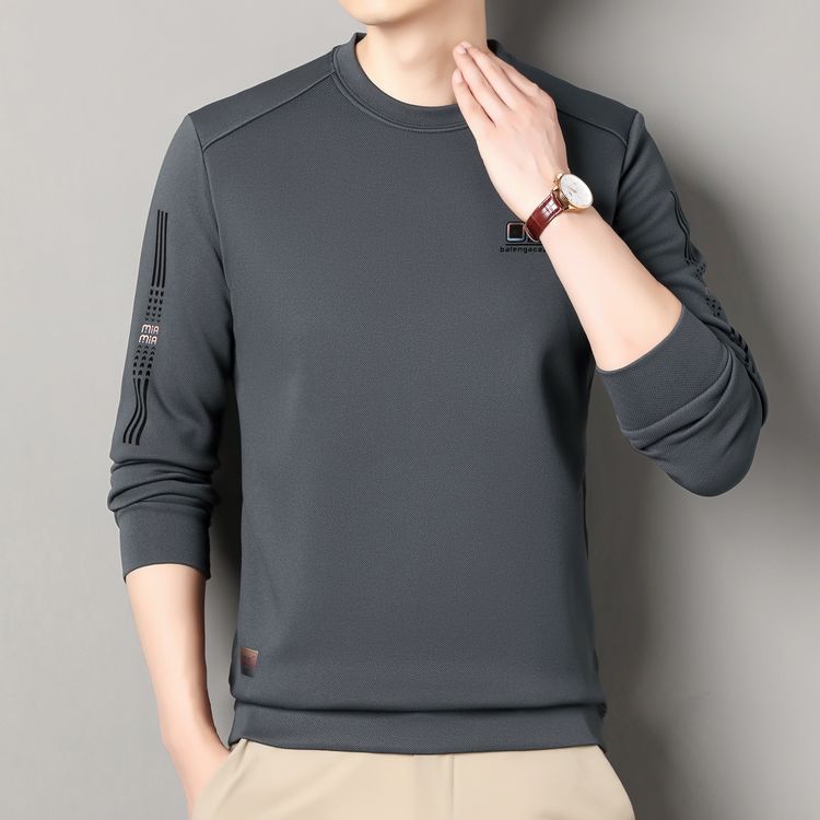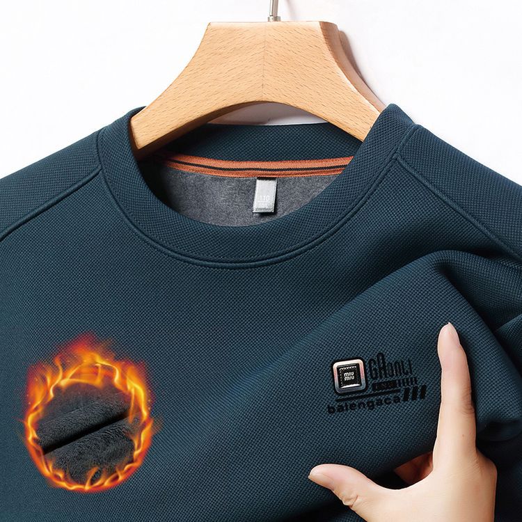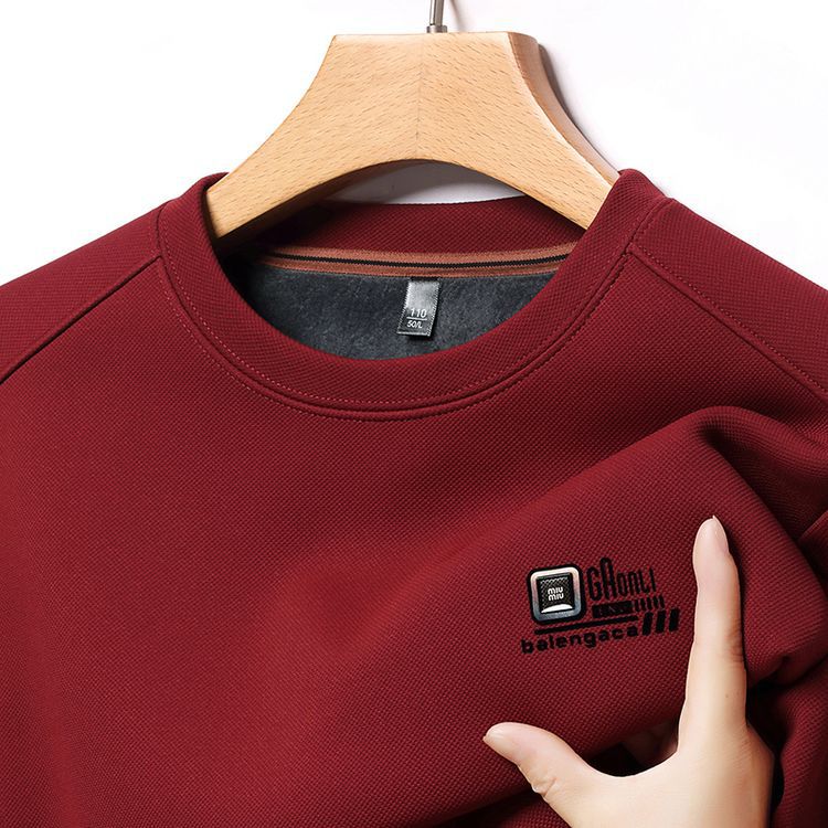24 가을/겨울 새로운 남자 기모 두꺼운 긴팔 스웨터 캐주얼 올 매치 라운드 넥 슬림베이스 셔츠 탑
