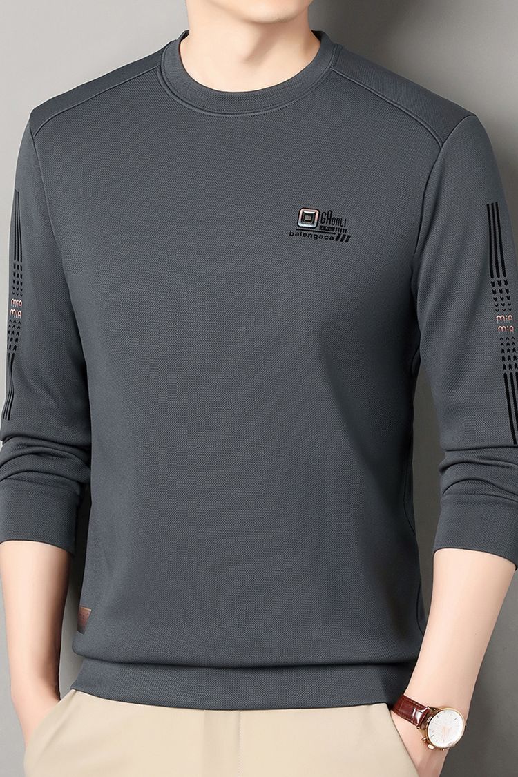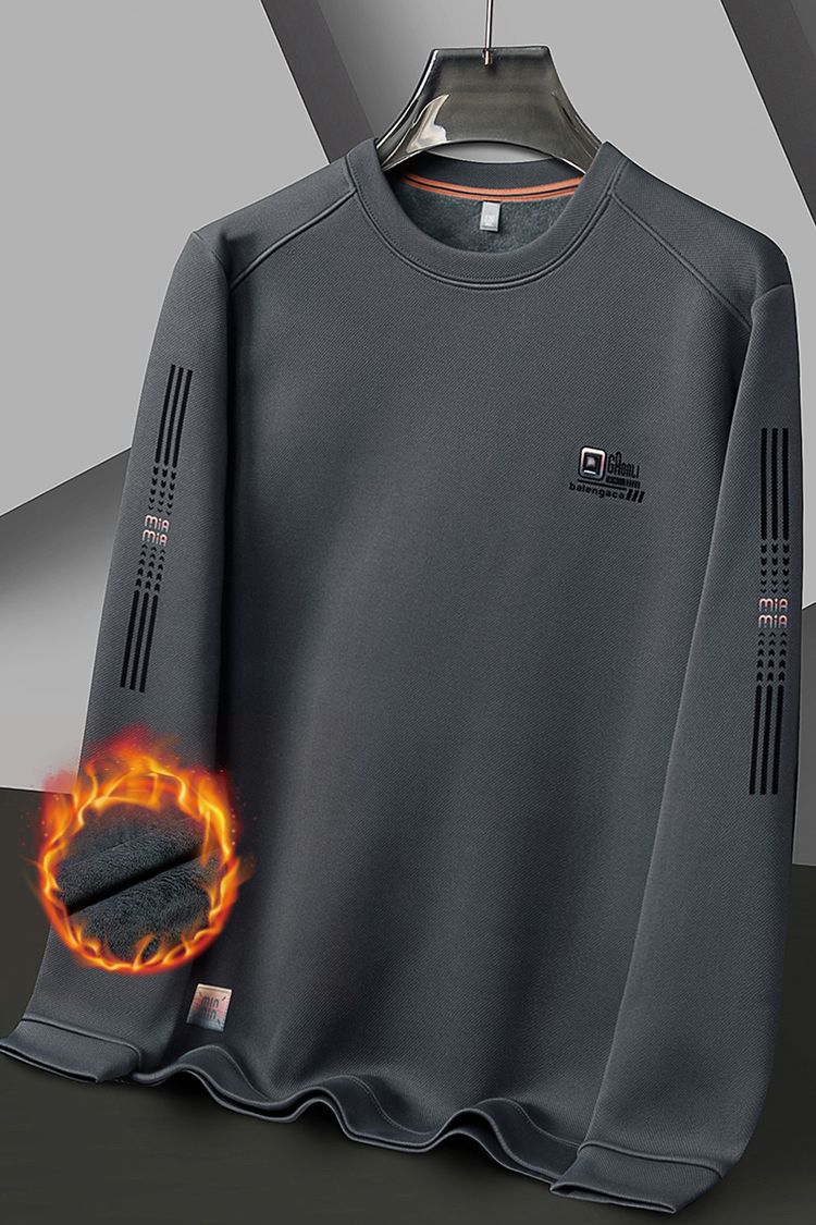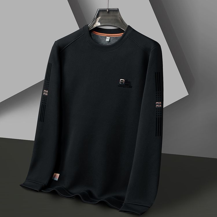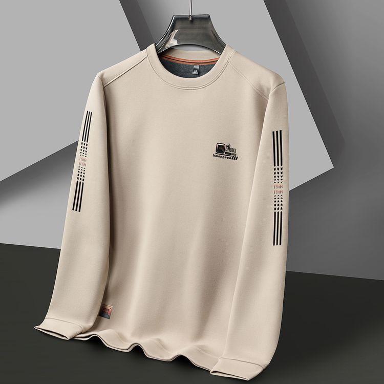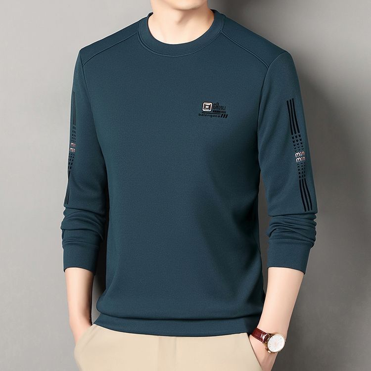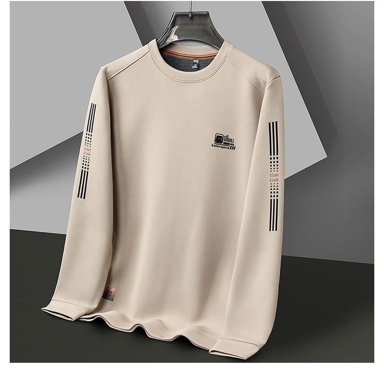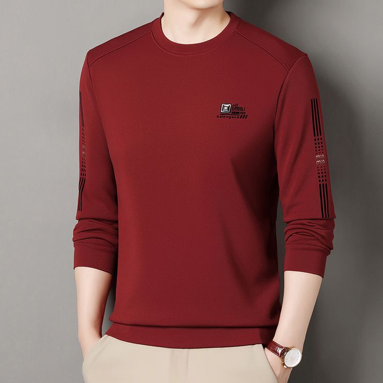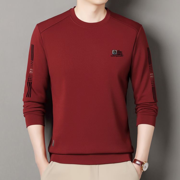 24 가을/겨울 새로운 남자 기모 두꺼운 긴팔 스웨터 캐주얼 올 매치 라운드 넥 슬림베이스 셔츠 탑
