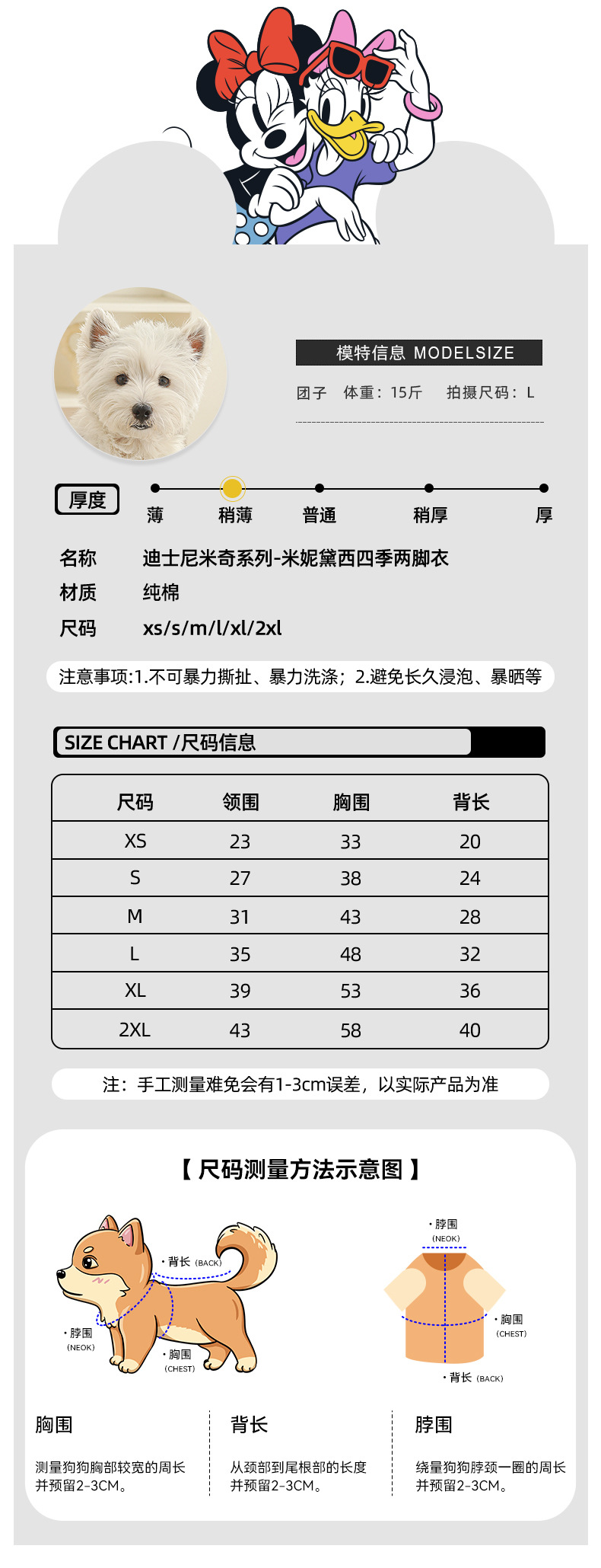 미키 시리즈 개 옷 미니 데이지 여름 줄무늬 티셔츠 개 조끼 Huayuan 애완 동물 고양이스토어 가기