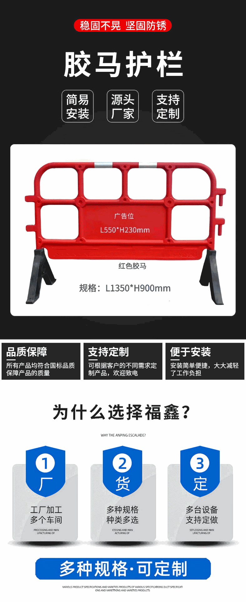 검은 빨간색 PE 가드 레일 도로 격리 울타리 재고 학교 모바일 접착제 말 도로 건설 격리 울타리스토어 가기