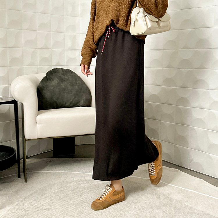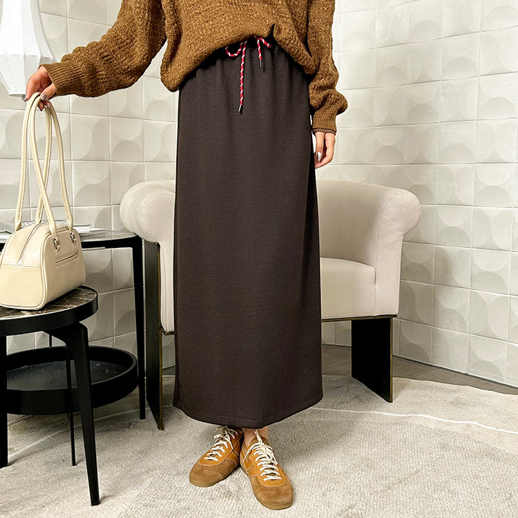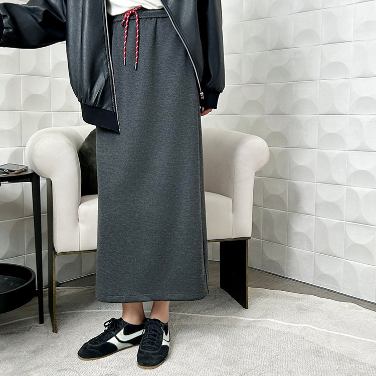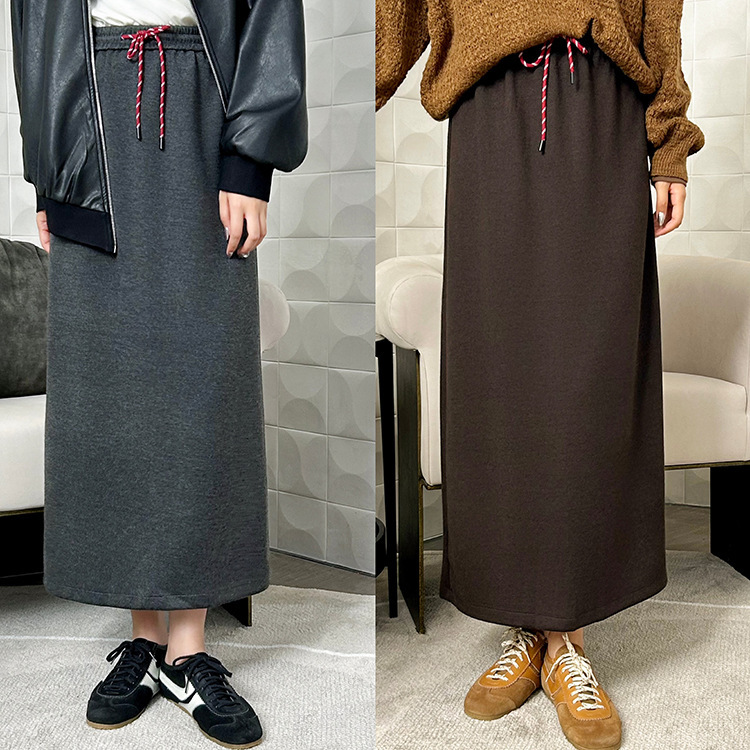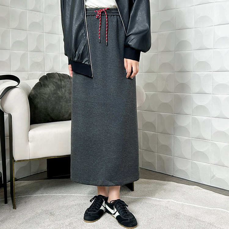 양모 스트레치 스포츠 탄성 허리 중간 길이 분할 니트 양모 스커트 여성의 2024 가을 및 겨울 새로운스토어 가기