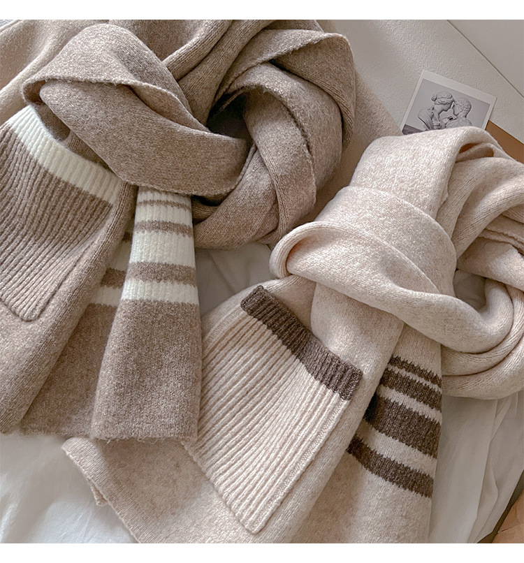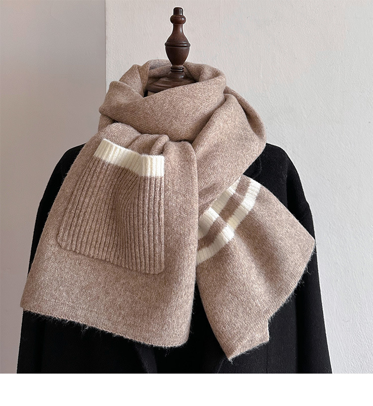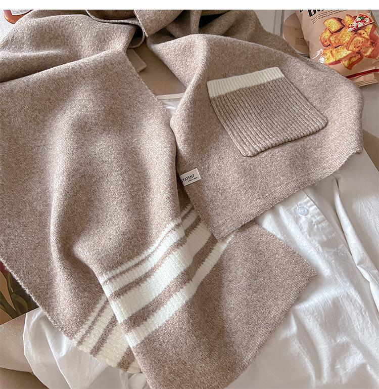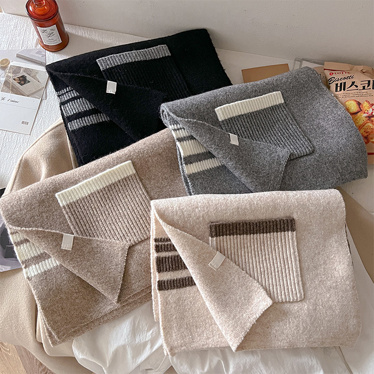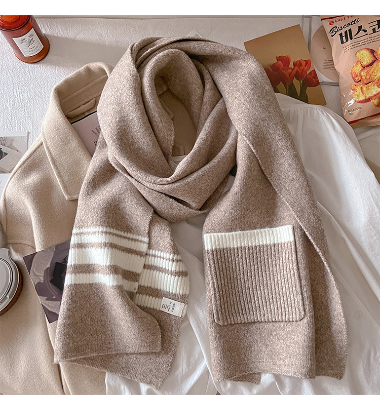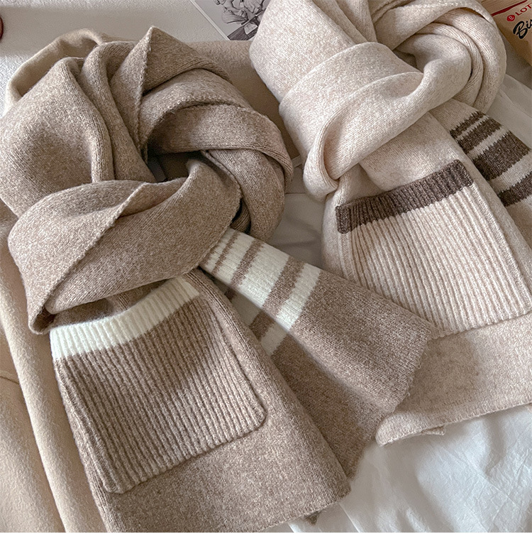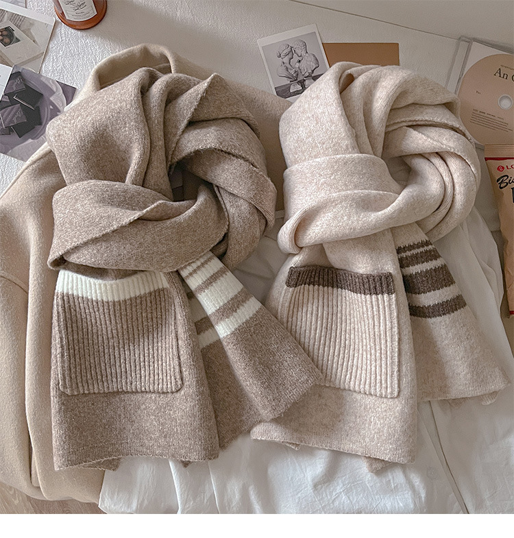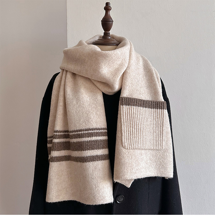 포켓 스카프 여성의 가을과 겨울 격자 무늬 줄무늬 양모 블렌드 올 매치 학생 커플 따뜻한 이중 목적 유행 스카프스토어 가기