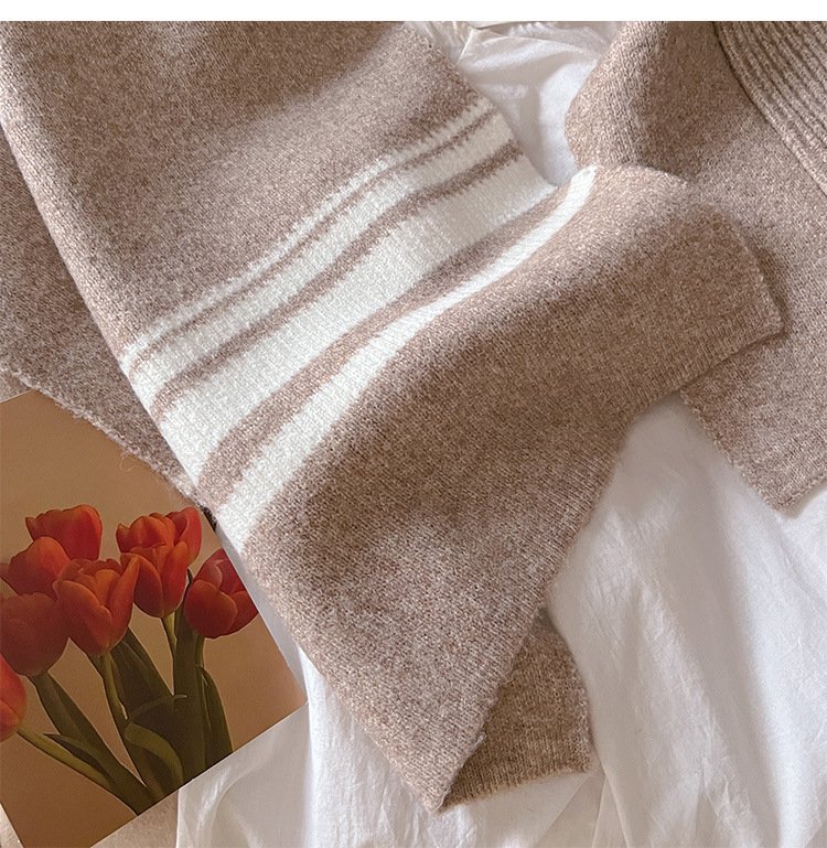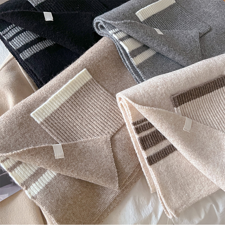 포켓 스카프 여성의 가을과 겨울 격자 무늬 줄무늬 양모 블렌드 올 매치 학생 커플 따뜻한 이중 목적 유행 스카프