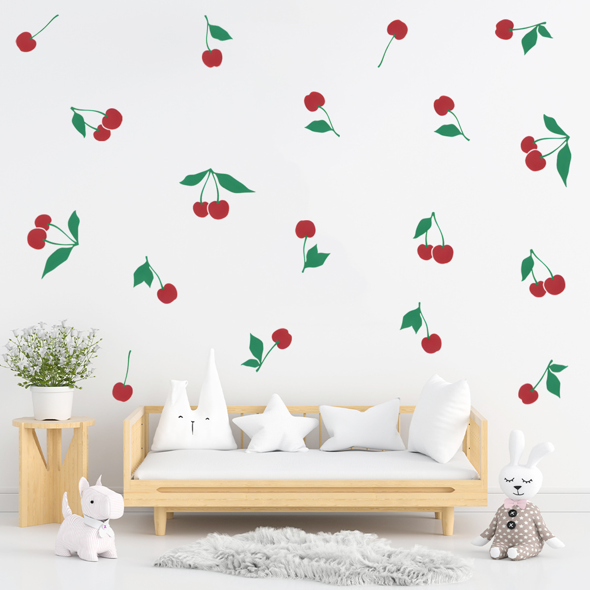만화 귀여운 신선한 작은 체리 자체 접착 벽 스티커 어린이 방 침실 배경 벽 장식 스티커 ZN3024C