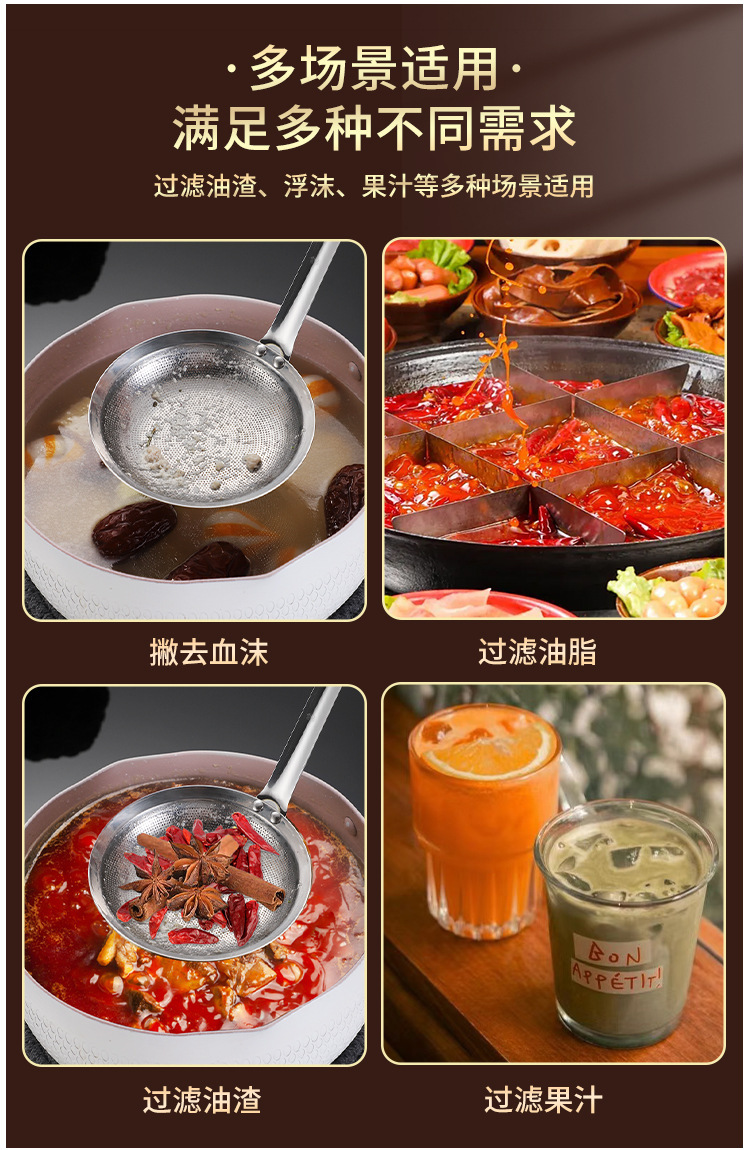 304 스테인레스 스틸 뜨거운 냄비 거품 숟가락 가정용 색소 주방 메쉬 스크린 여과 콩 우유 거품 잔류 오일 프라이스토어 가기