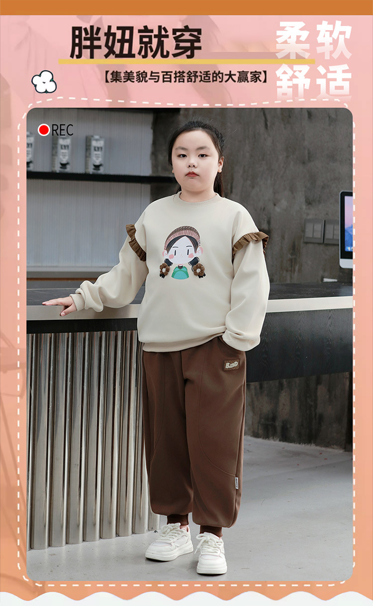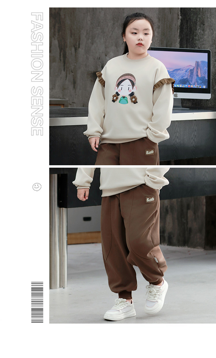 뚱뚱한 소녀의 뚱뚱한 겨울 세트 기모 두꺼운 느슨한 스웨트 셔츠 8-16 년 된 서양 스타일 캐주얼 투피스 세트