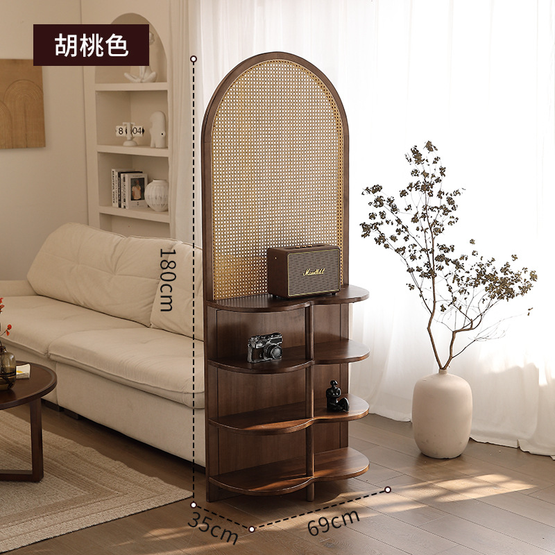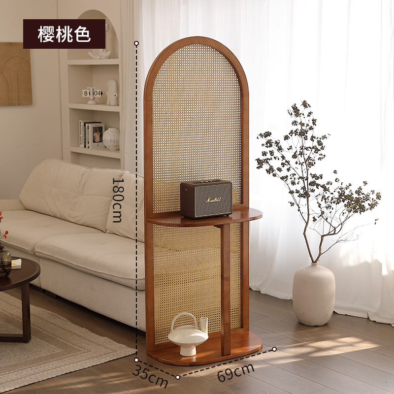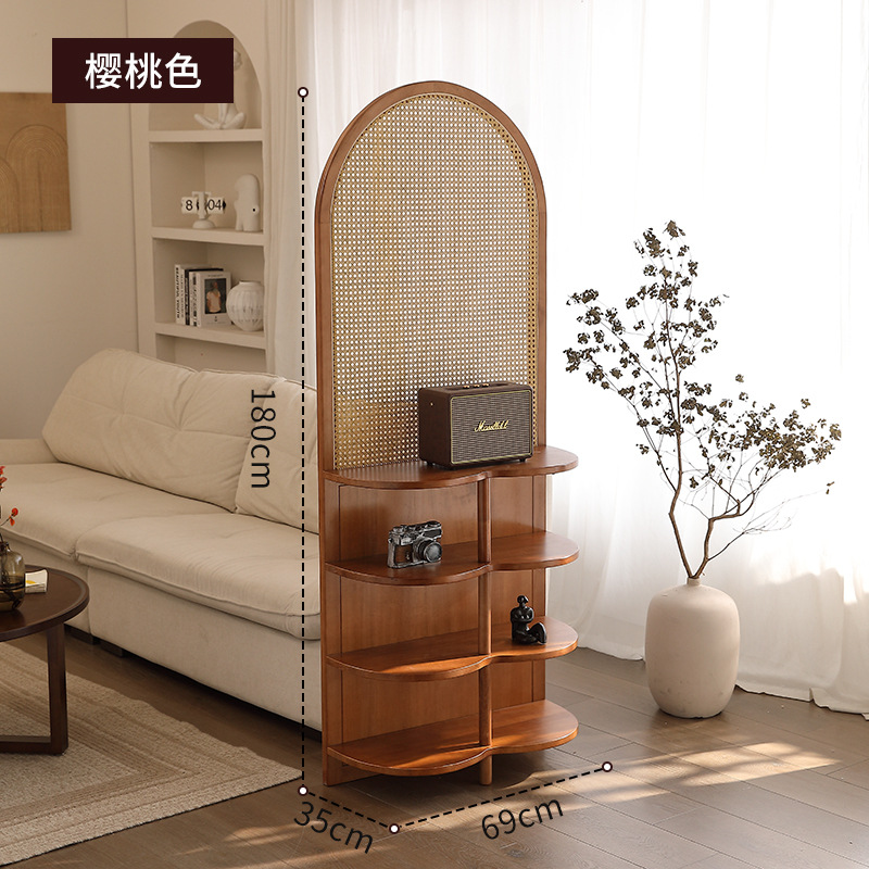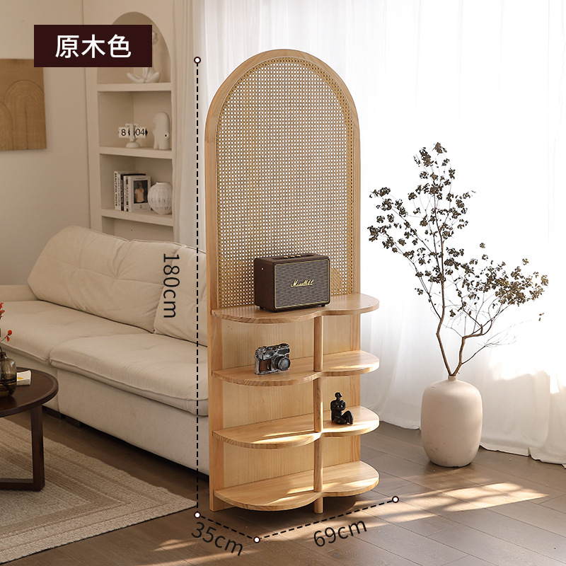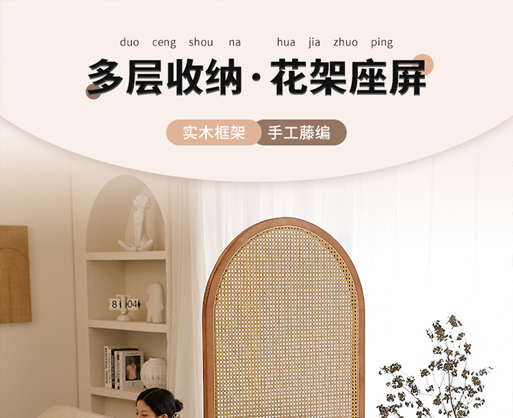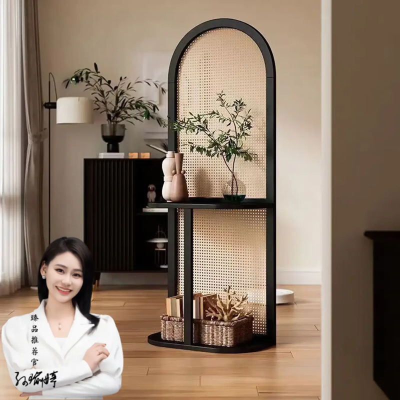 새로운 스타일의 중국 전통 복고풍 원목 등나무 이동식 수납 화분대 스크린 파티션 거실 현관 수납장