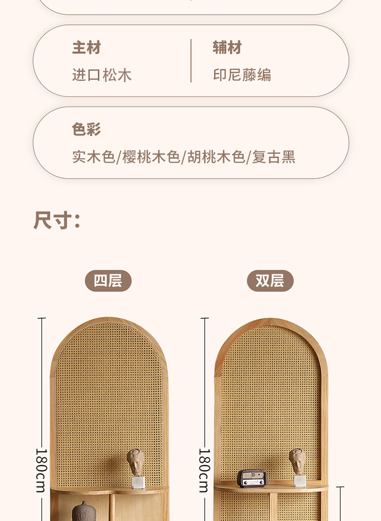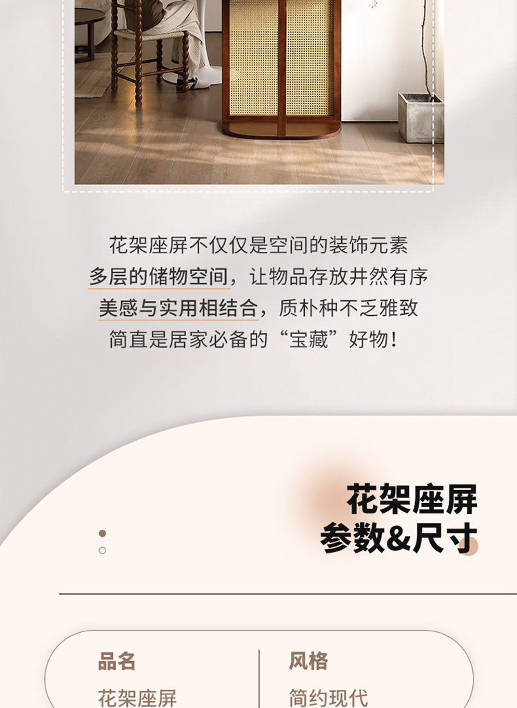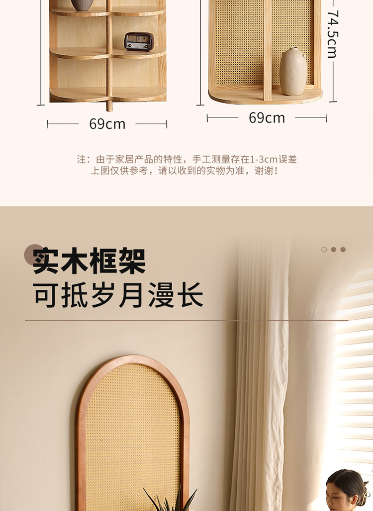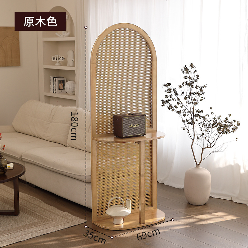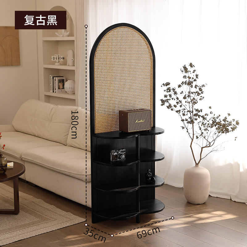 새로운 스타일의 중국 전통 복고풍 원목 등나무 이동식 수납 화분대 스크린 파티션 거실 현관 수납장