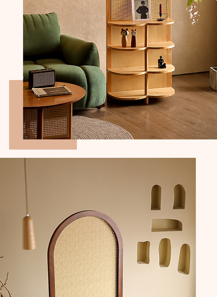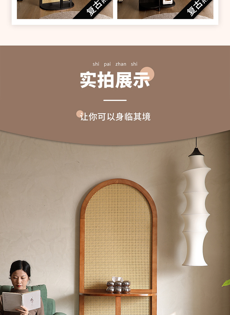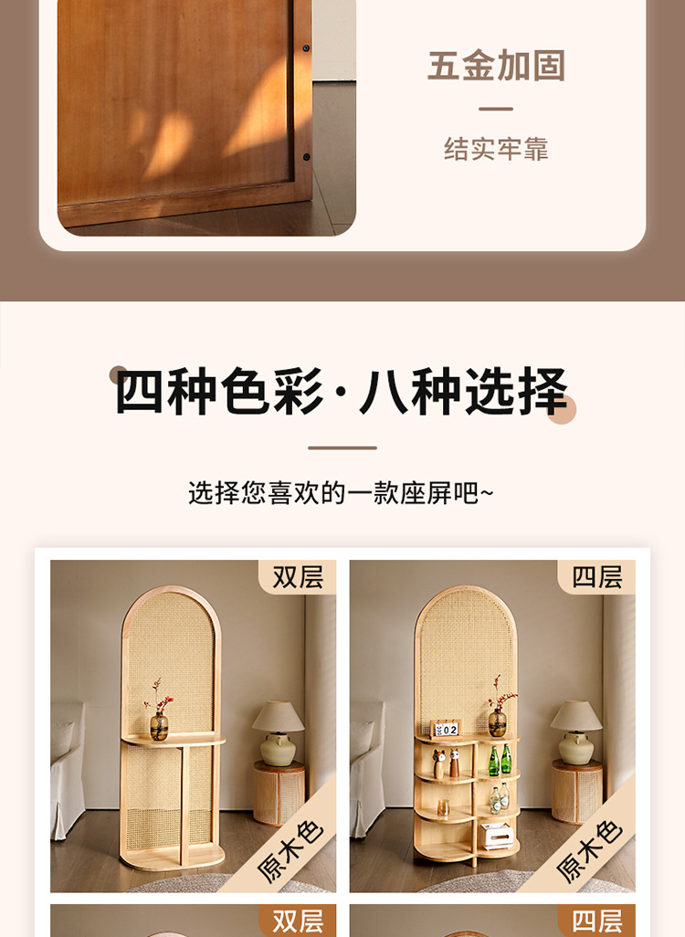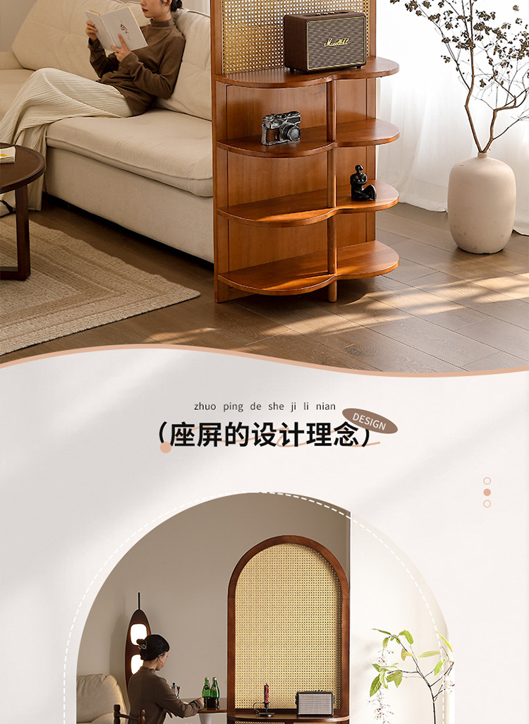 새로운 스타일의 중국 전통 복고풍 원목 등나무 이동식 수납 화분대 스크린 파티션 거실 현관 수납장스토어 가기