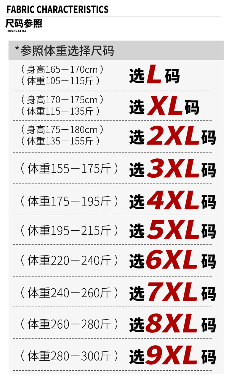 尺码 L XL 2XL 3XL 4XL 5XL 6XL 7XL 8XL 9XL